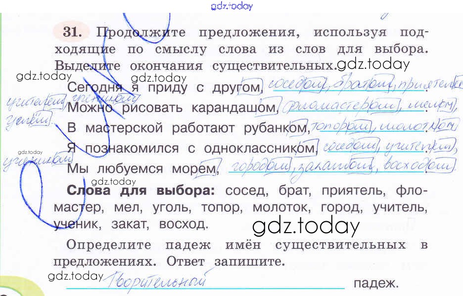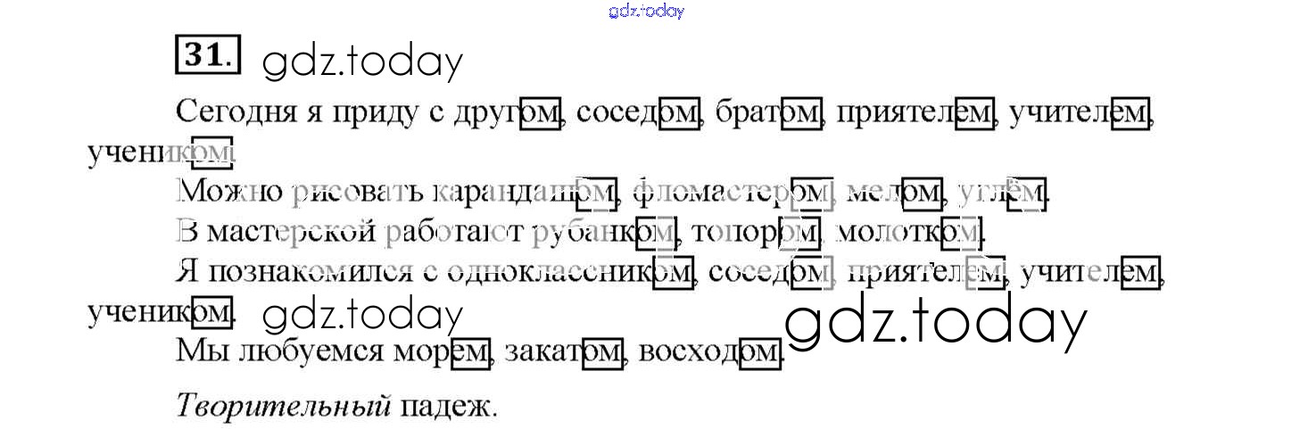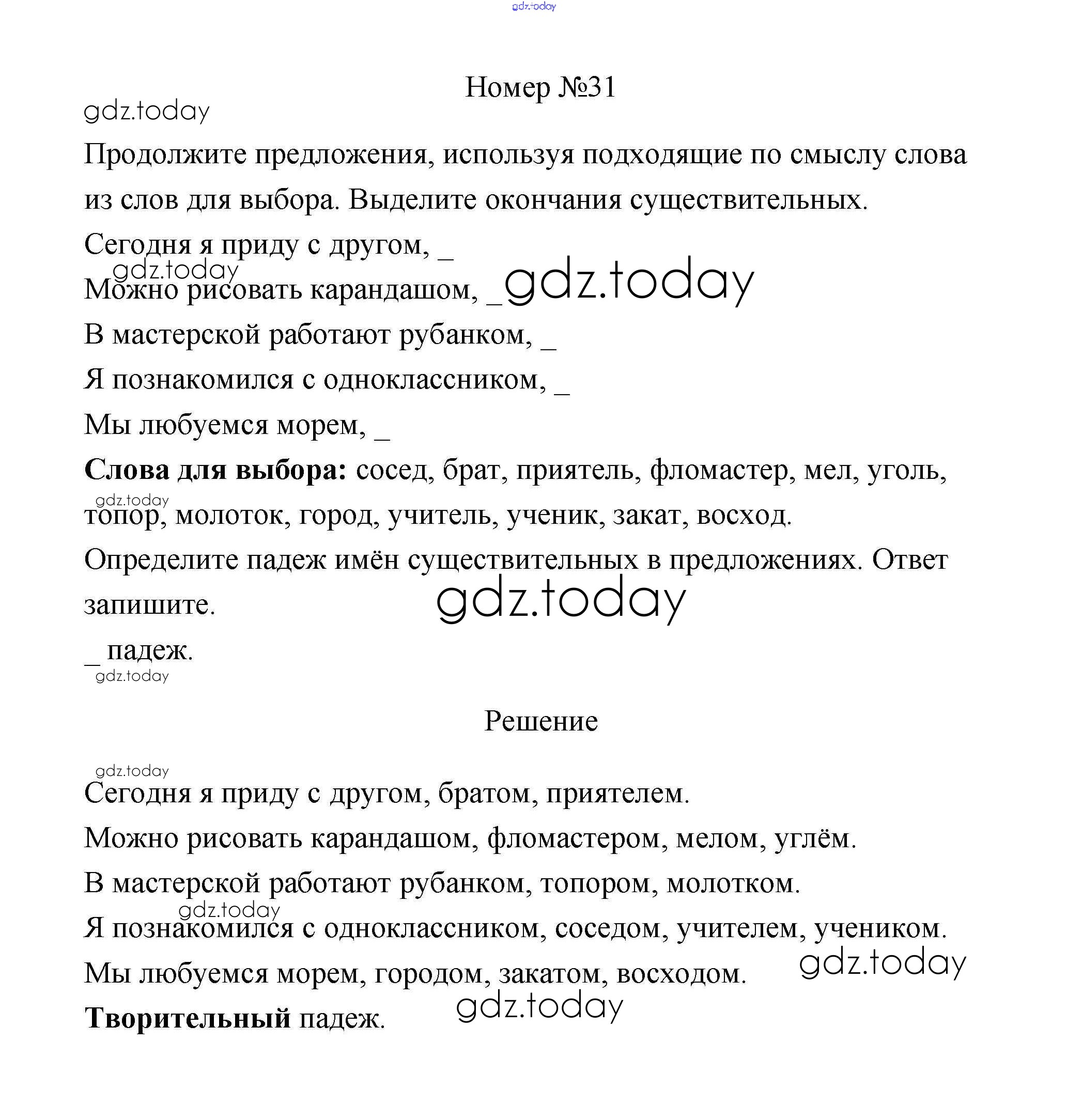 На страницах сайта gdz.today вы найдете учебный и вспомогательный материал, направленный на улучшения знаний школьной программы. ГДЗ - онлайн мир знаний Решение к части 2. Задания 31 Рабочей тетради по Русскому языку для 4 класса Климанова Просвещение Перспектива 2016