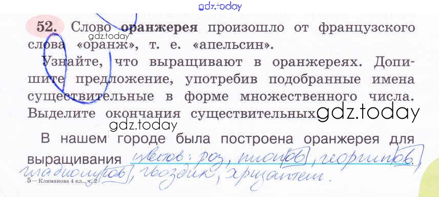 На страницах сайта gdz.today вы найдете учебный и вспомогательный материал, направленный на улучшения знаний школьной программы. ГДЗ - онлайн мир знаний Решение к части 2. Задания 52 Рабочей тетради по Русскому языку для 4 класса Климанова Просвещение Перспектива 2016