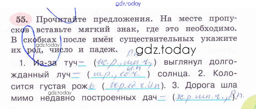 На страницах сайта gdz.today вы найдете учебный и вспомогательный материал, направленный на улучшения знаний школьной программы. ГДЗ - онлайн мир знаний Решение к части 2. Задания 55 Рабочей тетради по Русскому языку для 4 класса Климанова Просвещение Перспектива 2016