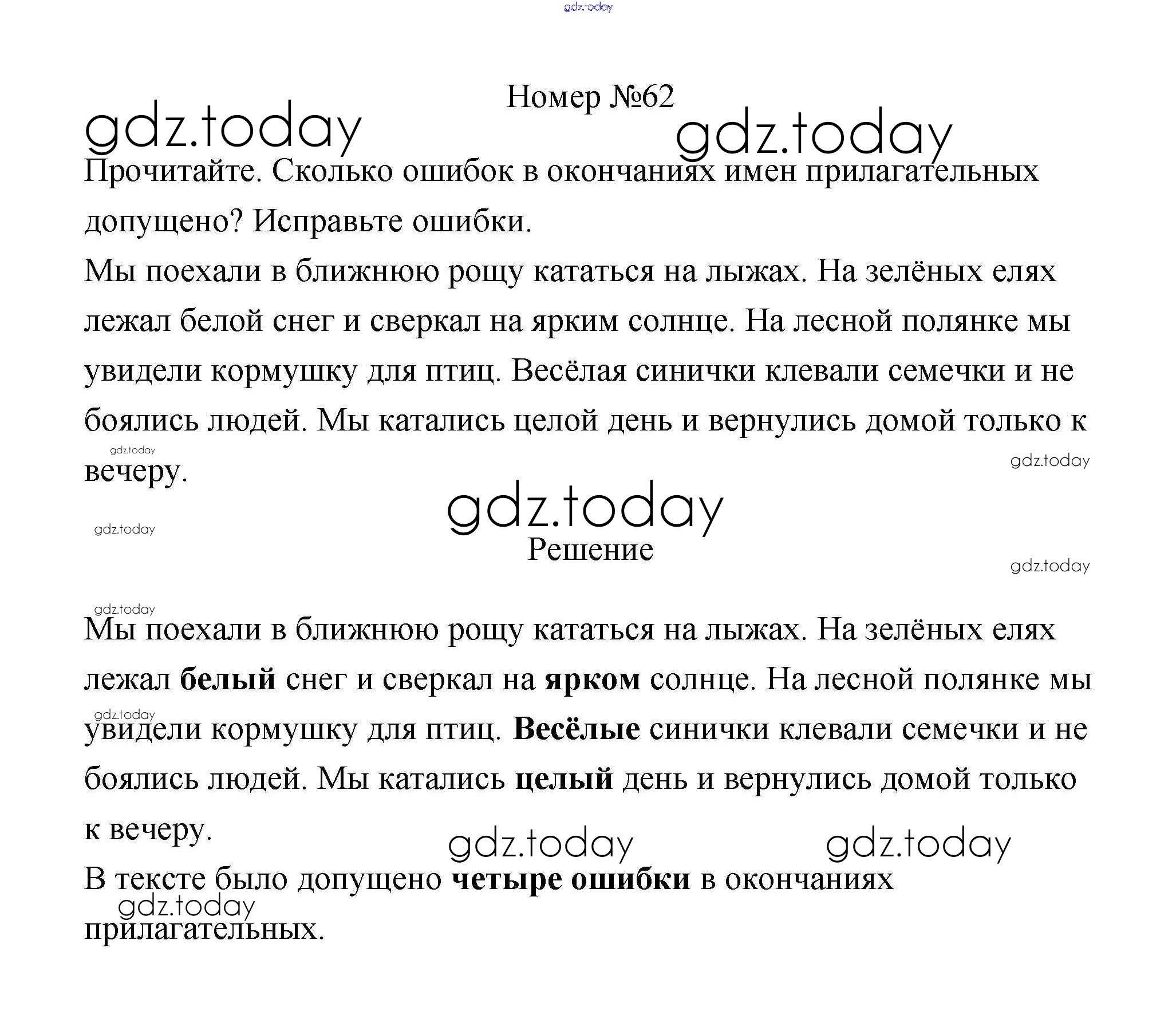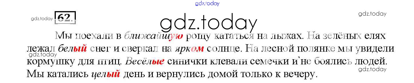 На страницах сайта gdz.today вы найдете учебный и вспомогательный материал, направленный на улучшения знаний школьной программы. ГДЗ - онлайн мир знаний Решение к части 2. Задания 62 Рабочей тетради по Русскому языку для 4 класса Климанова Просвещение Перспектива 2016