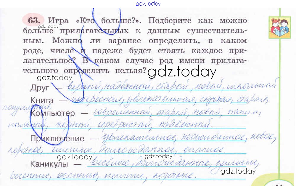 На страницах сайта gdz.today вы найдете учебный и вспомогательный материал, направленный на улучшения знаний школьной программы. ГДЗ - онлайн мир знаний Решение к части 2. Задания 63 Рабочей тетради по Русскому языку для 4 класса Климанова Просвещение Перспектива 2016
