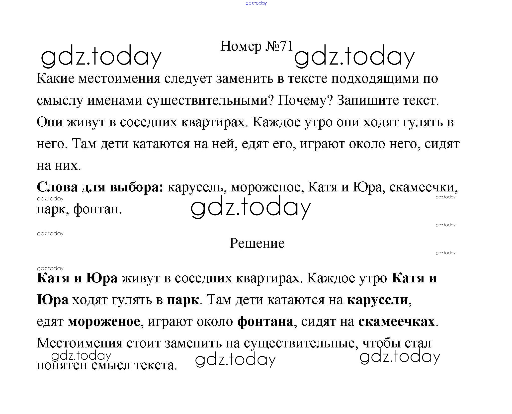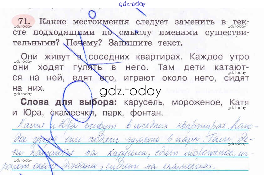 На страницах сайта gdz.today вы найдете учебный и вспомогательный материал, направленный на улучшения знаний школьной программы. ГДЗ - онлайн мир знаний Решение к части 2. Задания 71 Рабочей тетради по Русскому языку для 4 класса Климанова Просвещение Перспектива 2016
