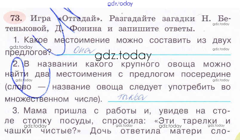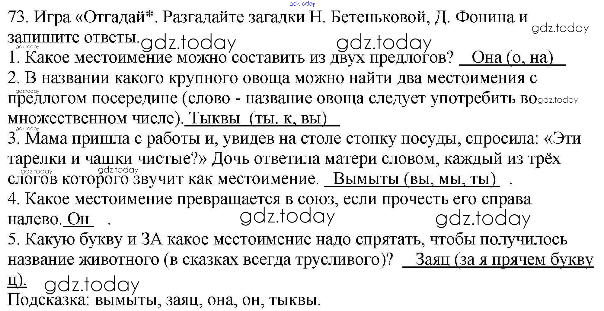 На страницах сайта gdz.today вы найдете учебный и вспомогательный материал, направленный на улучшения знаний школьной программы. ГДЗ - онлайн мир знаний Решение к части 2. Задания 73 Рабочей тетради по Русскому языку для 4 класса Климанова Просвещение Перспектива 2016
