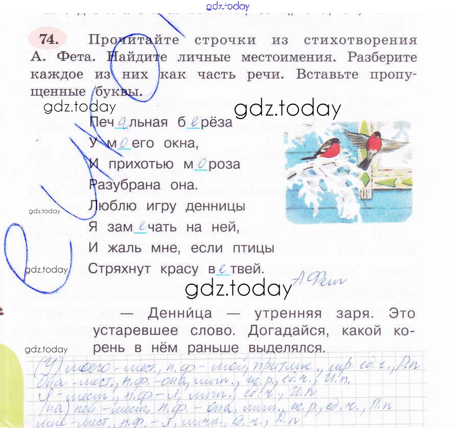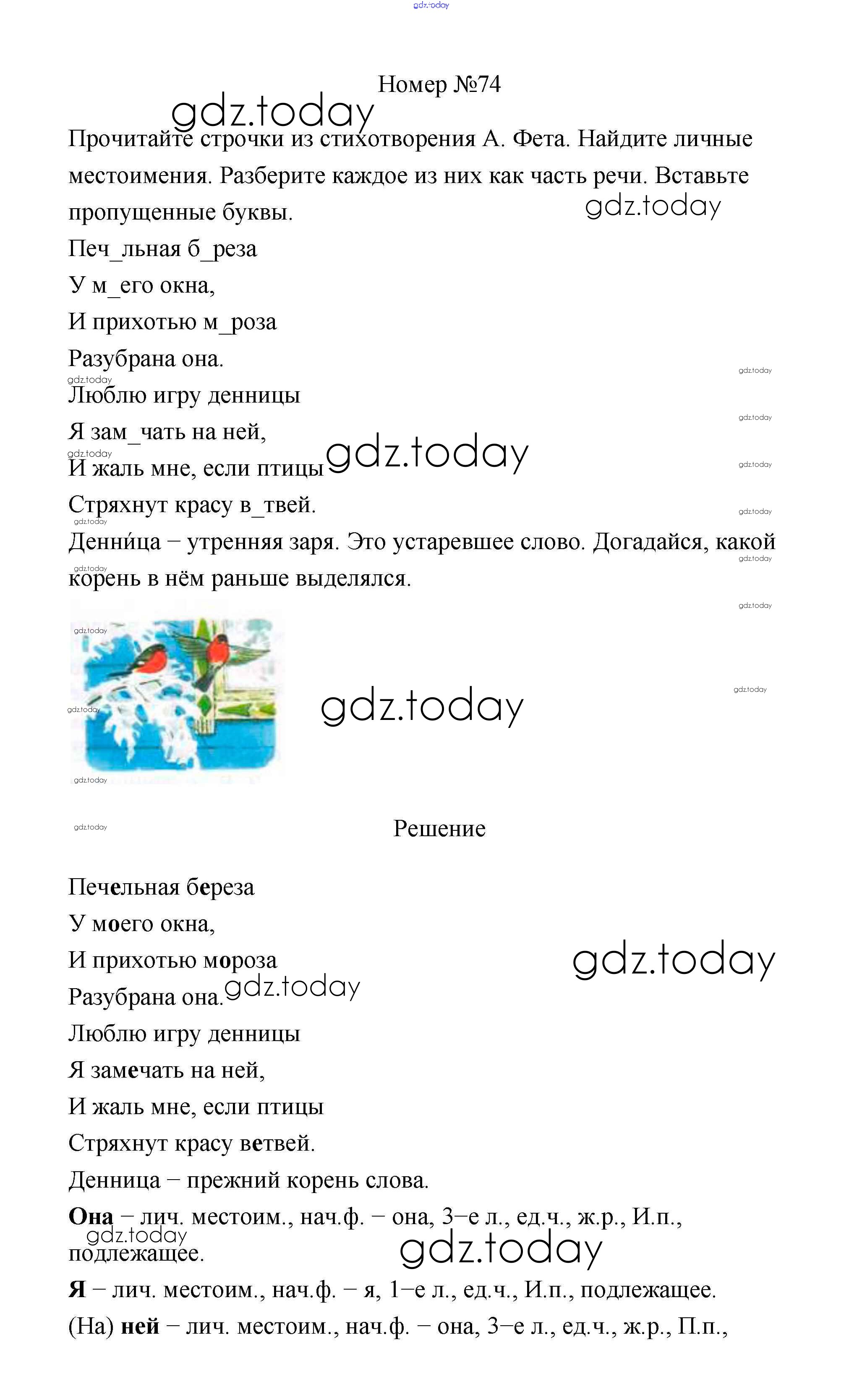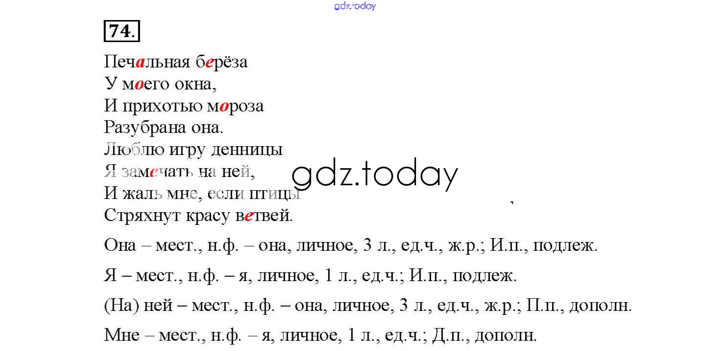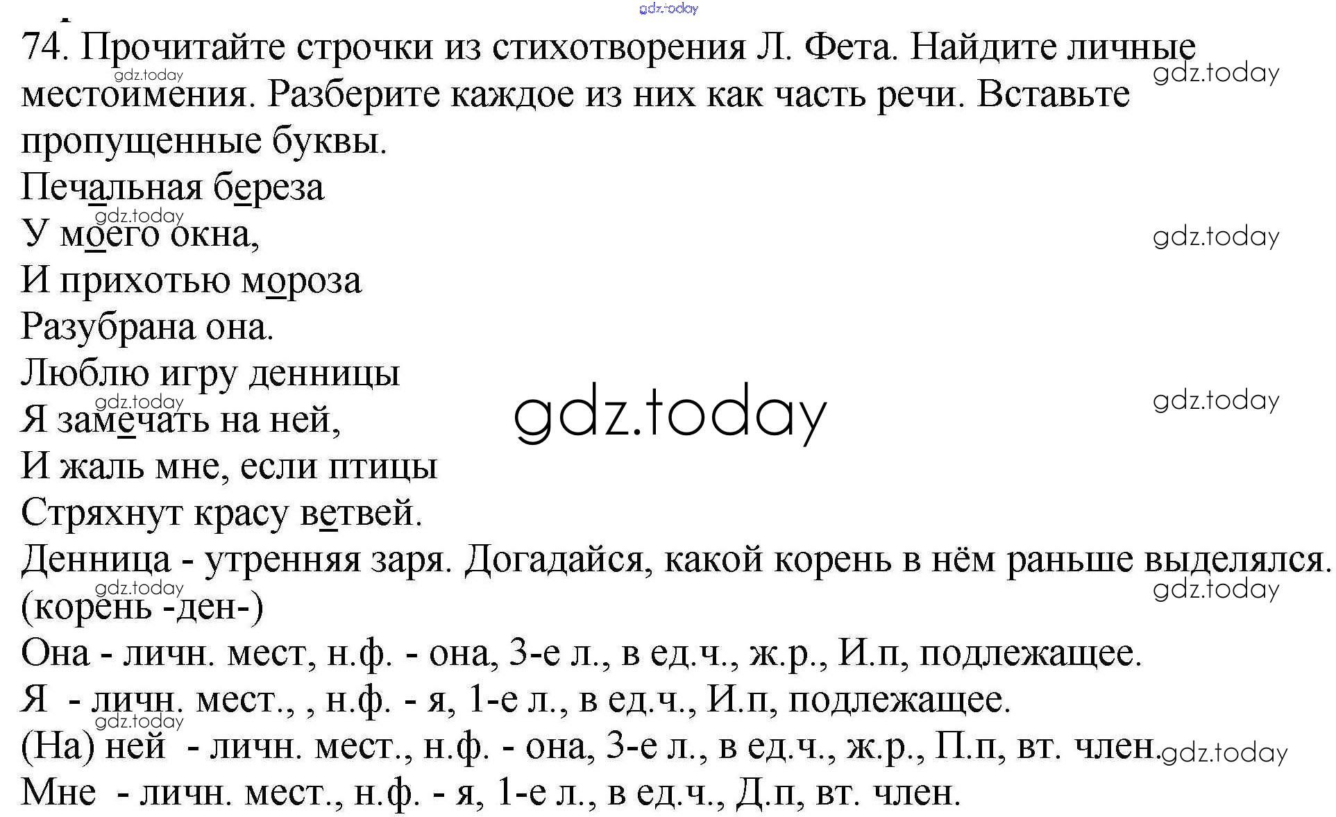 На страницах сайта gdz.today вы найдете учебный и вспомогательный материал, направленный на улучшения знаний школьной программы. ГДЗ - онлайн мир знаний Решение к части 2. Задания 74 Рабочей тетради по Русскому языку для 4 класса Климанова Просвещение Перспектива 2016