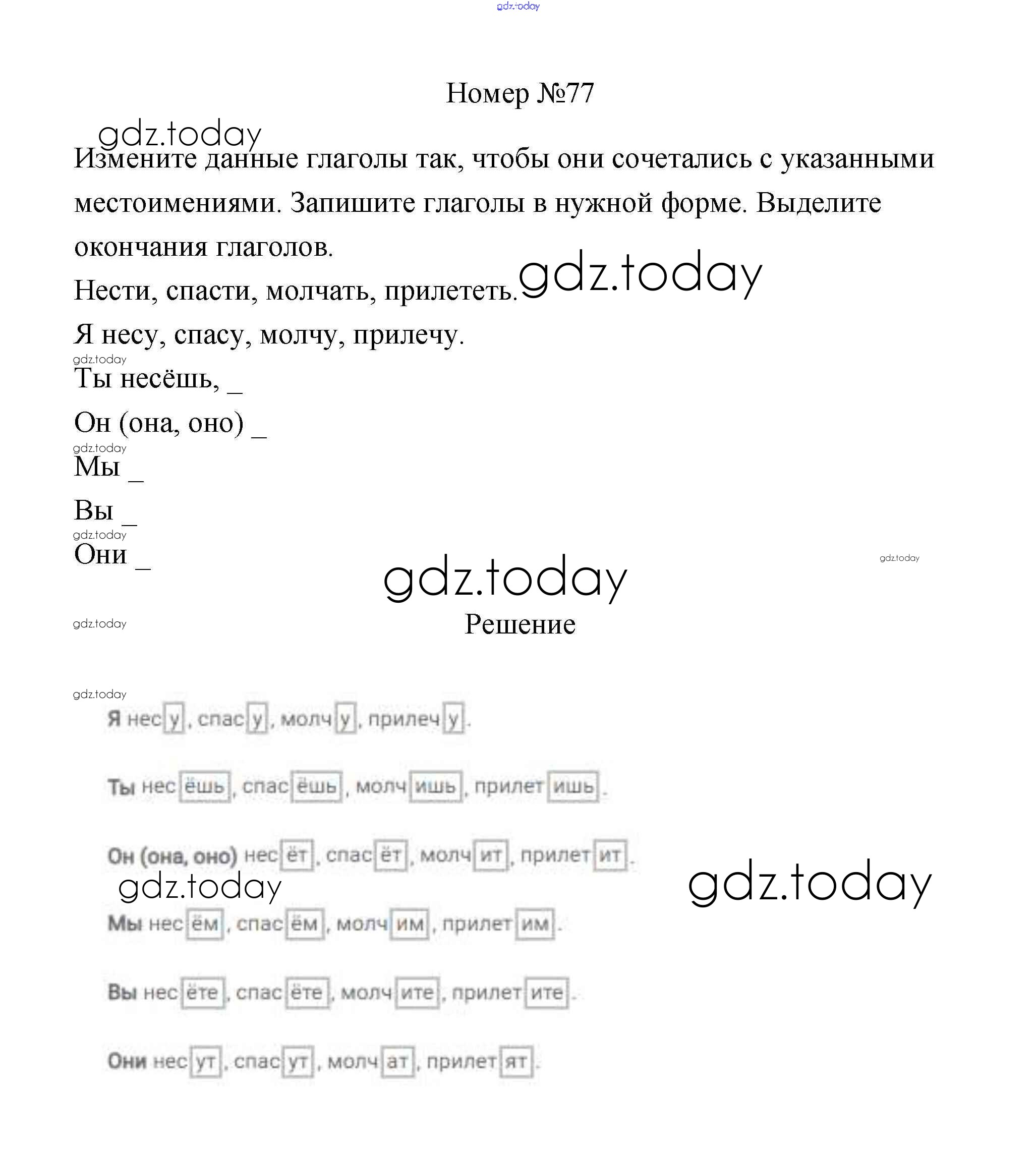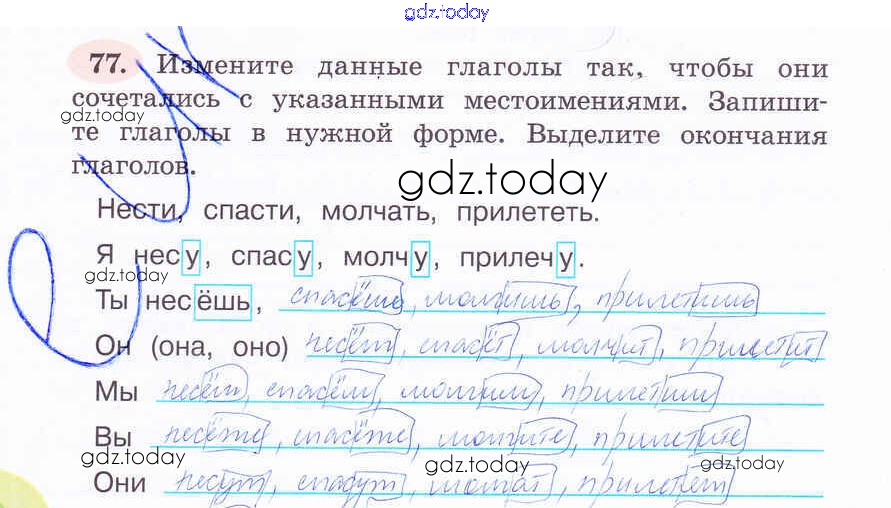На страницах сайта gdz.today вы найдете учебный и вспомогательный материал, направленный на улучшения знаний школьной программы. ГДЗ - онлайн мир знаний Решение к части 2. Задания 77 Рабочей тетради по Русскому языку для 4 класса Климанова Просвещение Перспектива 2016