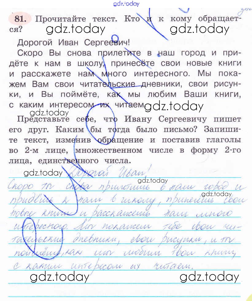 На страницах сайта gdz.today вы найдете учебный и вспомогательный материал, направленный на улучшения знаний школьной программы. ГДЗ - онлайн мир знаний Решение к части 2. Задания 81 Рабочей тетради по Русскому языку для 4 класса Климанова Просвещение Перспектива 2016