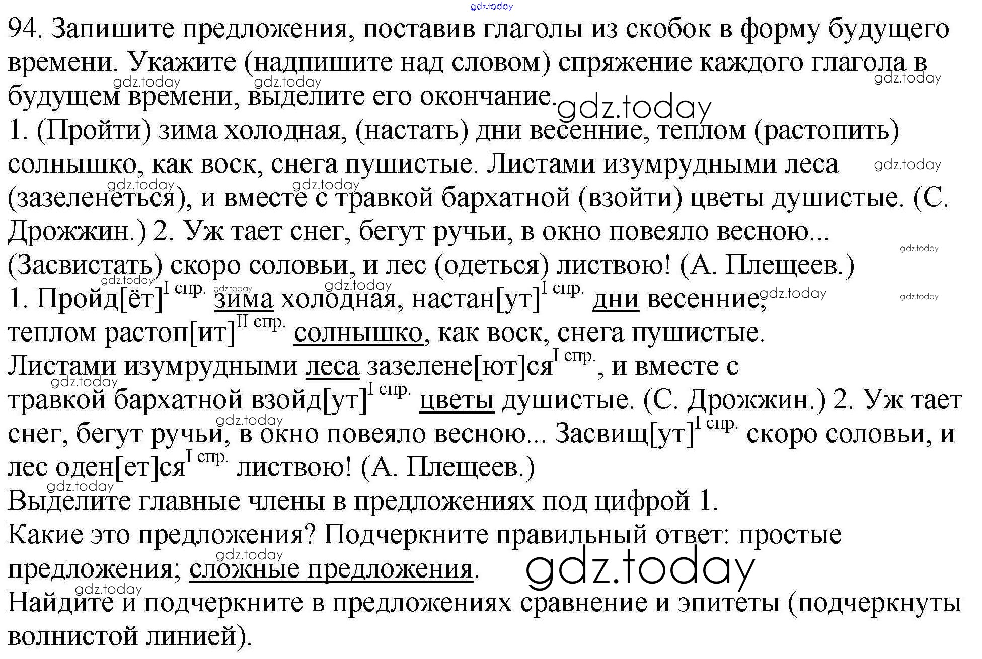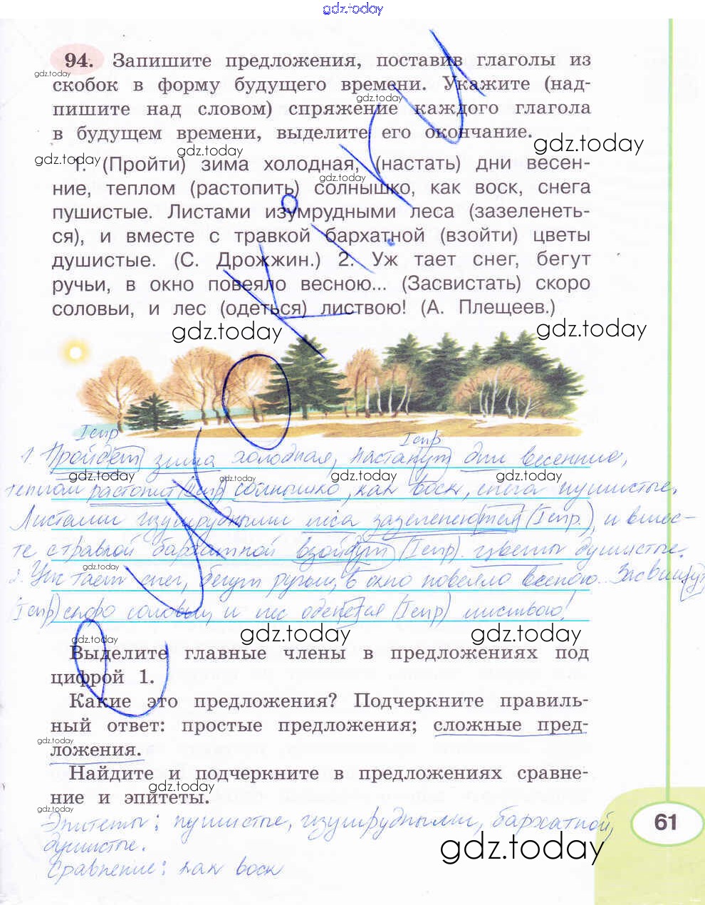На страницах сайта gdz.today вы найдете учебный и вспомогательный материал, направленный на улучшения знаний школьной программы. ГДЗ - онлайн мир знаний Решение к части 2. Задания 94 Рабочей тетради по Русскому языку для 4 класса Климанова Просвещение Перспектива 2016
