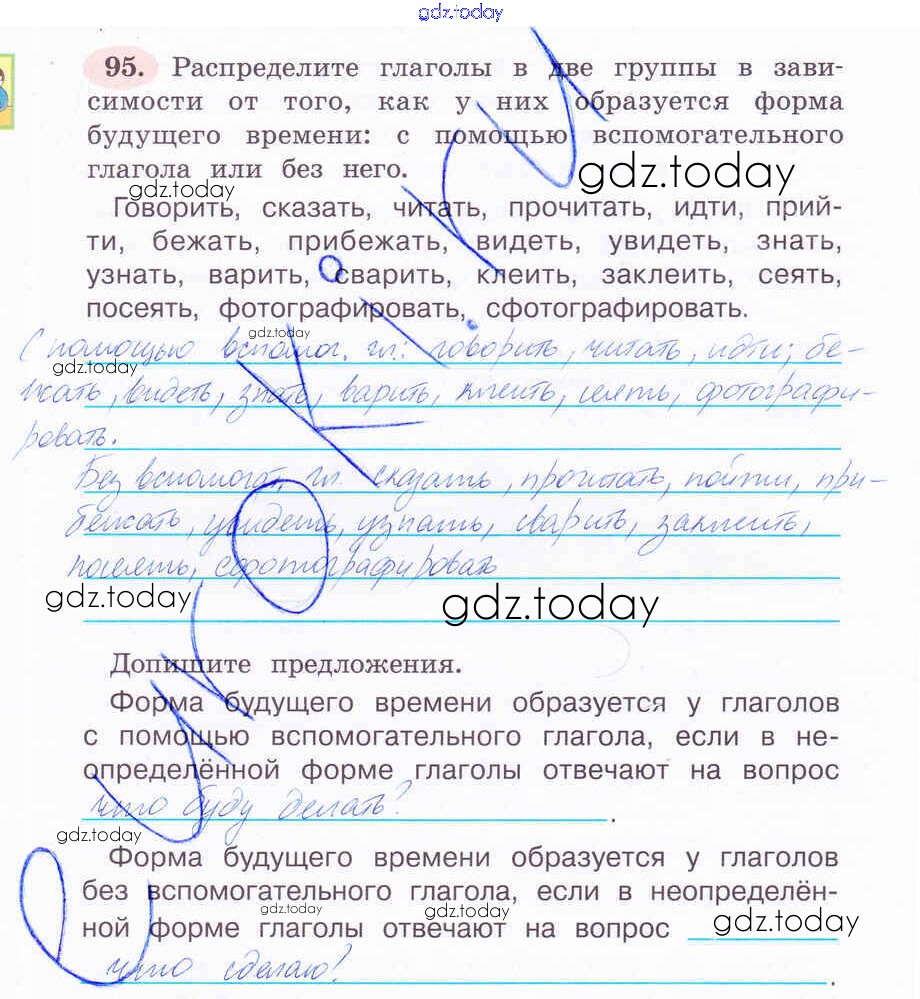 На страницах сайта gdz.today вы найдете учебный и вспомогательный материал, направленный на улучшения знаний школьной программы. ГДЗ - онлайн мир знаний Решение к части 2. Задания 95 Рабочей тетради по Русскому языку для 4 класса Климанова Просвещение Перспектива 2016