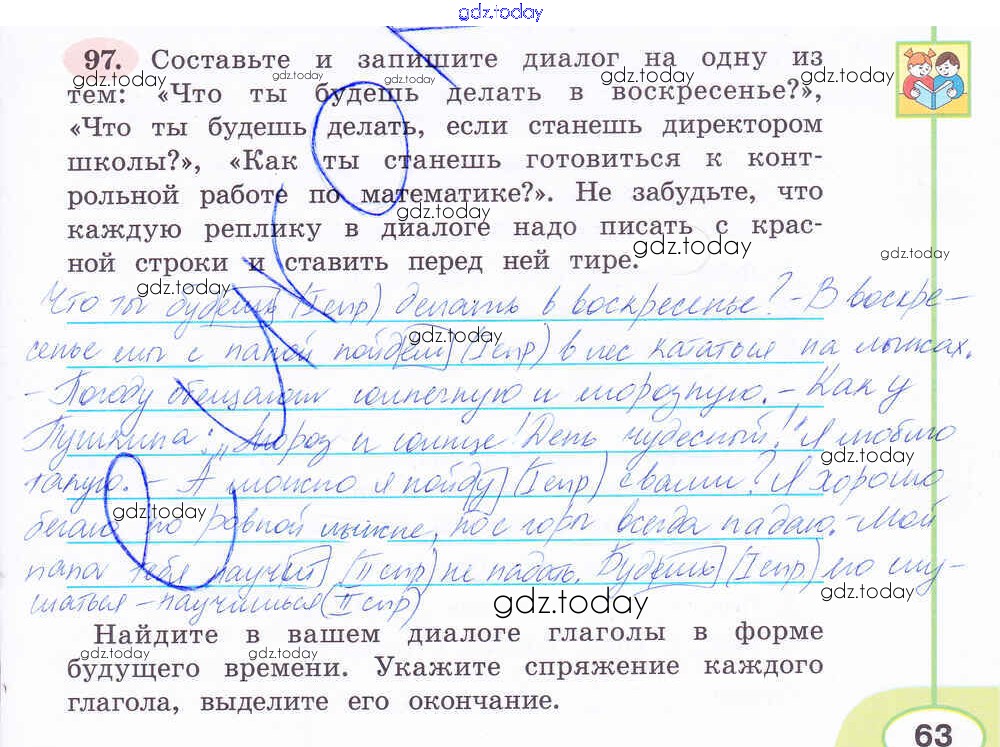 На страницах сайта gdz.today вы найдете учебный и вспомогательный материал, направленный на улучшения знаний школьной программы. ГДЗ - онлайн мир знаний Решение к части 2. Задания 97 Рабочей тетради по Русскому языку для 4 класса Климанова Просвещение Перспектива 2016