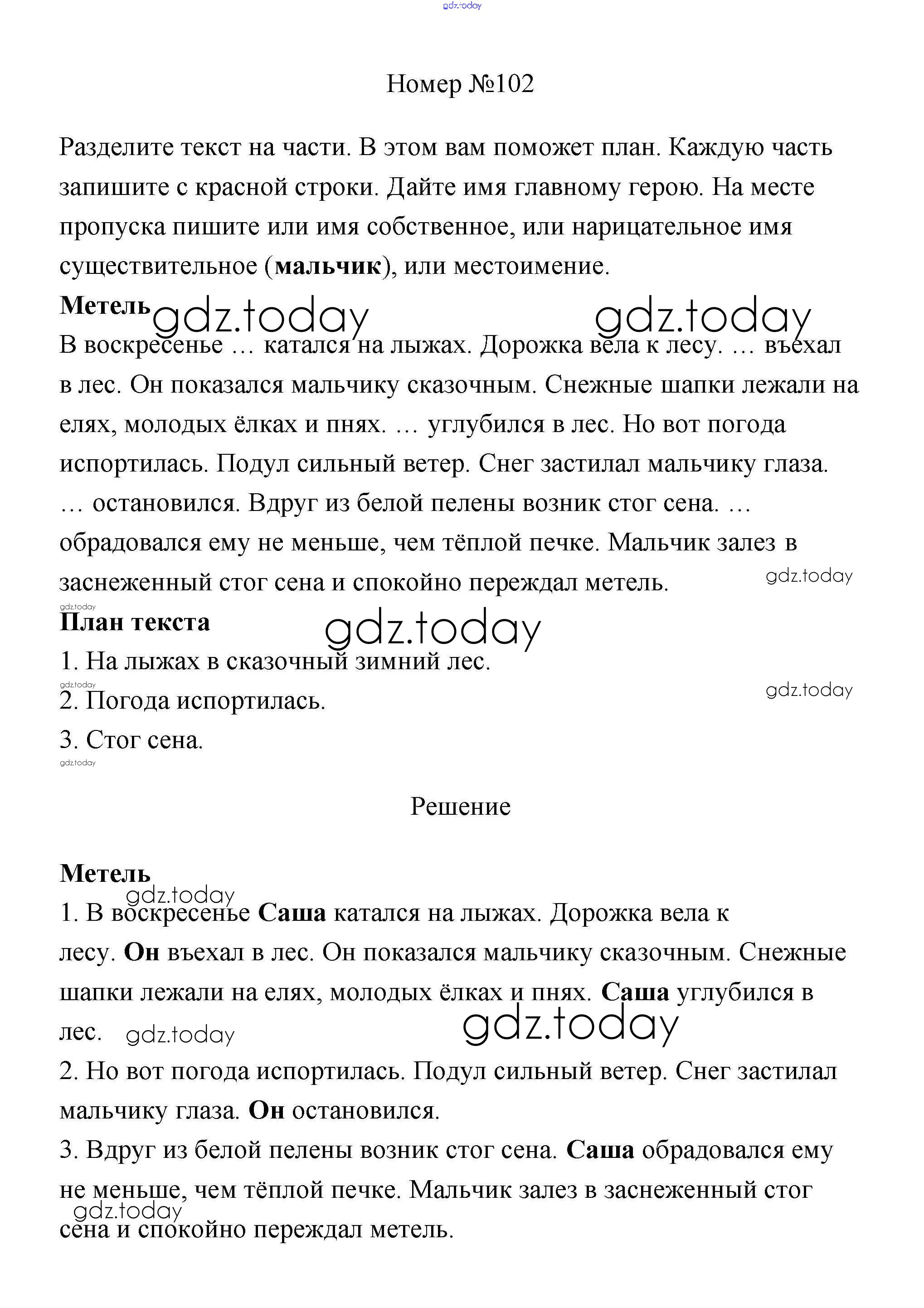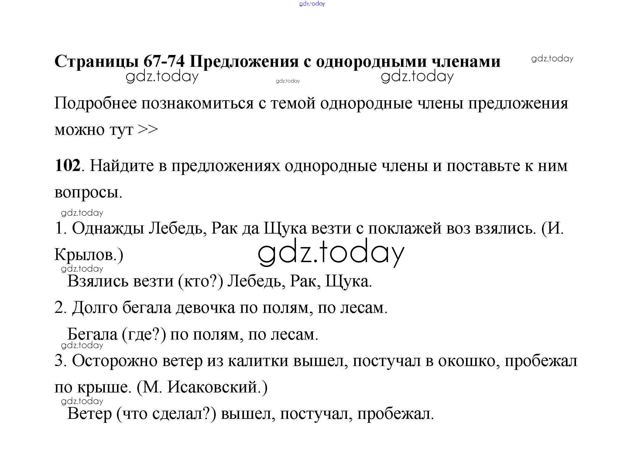 На страницах сайта gdz.today вы найдете учебный и вспомогательный материал, направленный на улучшения знаний школьной программы. ГДЗ - онлайн мир знаний Решение к части 1 102 Учебнику по Русскому языку для 4 класса Климанова, Бабушкина Просвещение Перспектива 2014