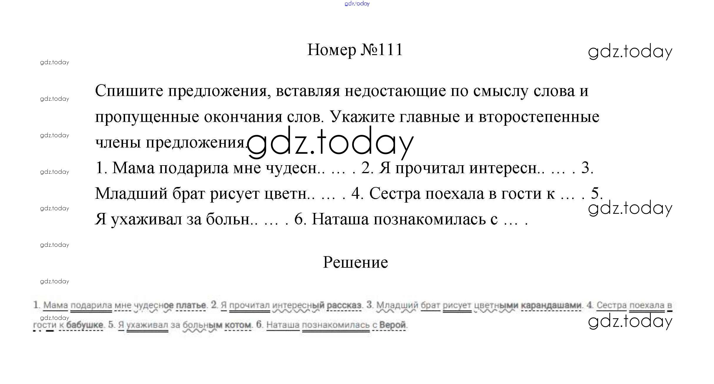 На страницах сайта gdz.today вы найдете учебный и вспомогательный материал, направленный на улучшения знаний школьной программы. ГДЗ - онлайн мир знаний Решение к части 1 111 Учебнику по Русскому языку для 4 класса Климанова, Бабушкина Просвещение Перспектива 2014