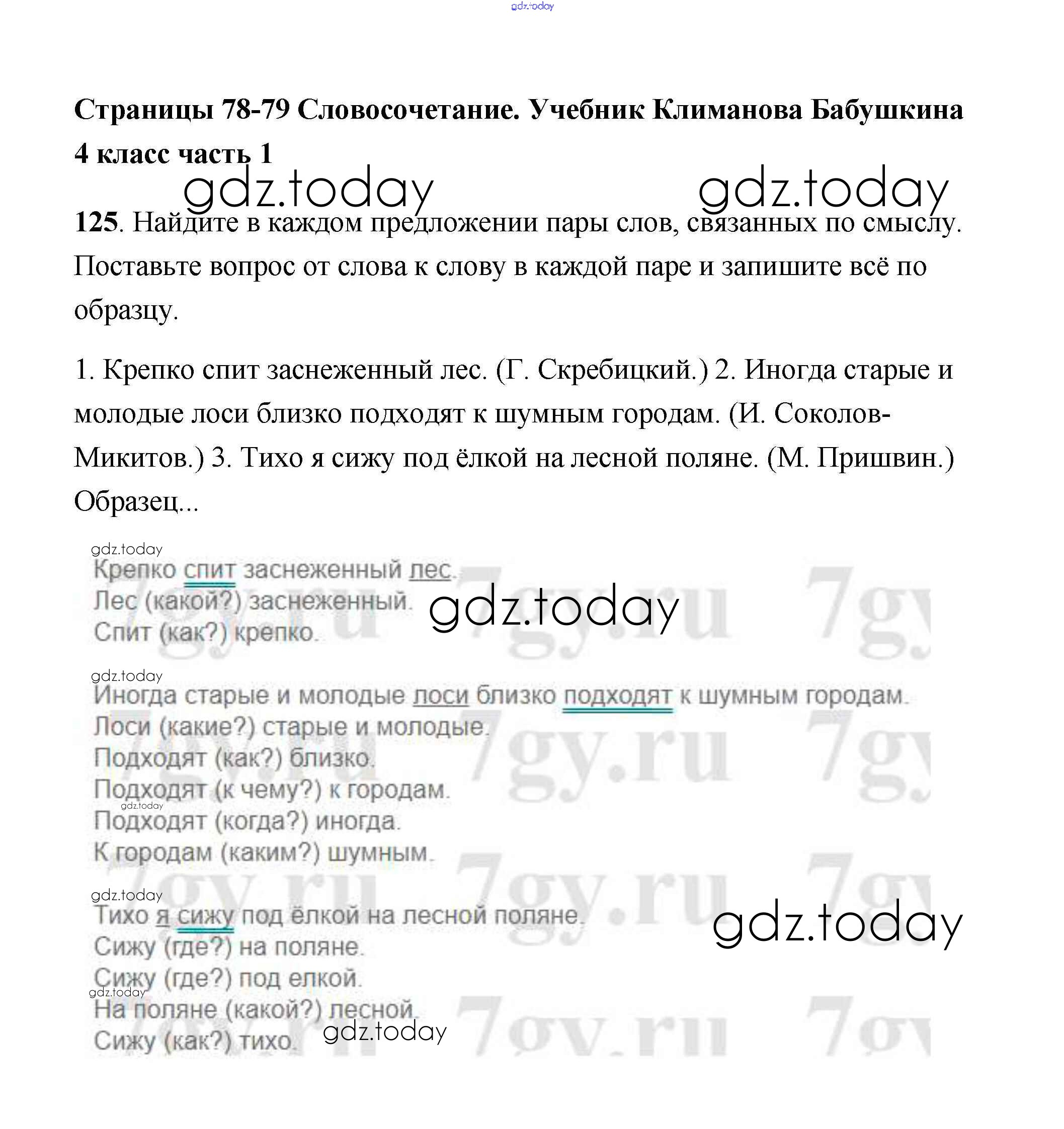 На страницах сайта gdz.today вы найдете учебный и вспомогательный материал, направленный на улучшения знаний школьной программы. ГДЗ - онлайн мир знаний Решение к части 1 125 Учебнику по Русскому языку для 4 класса Климанова, Бабушкина Просвещение Перспектива 2014