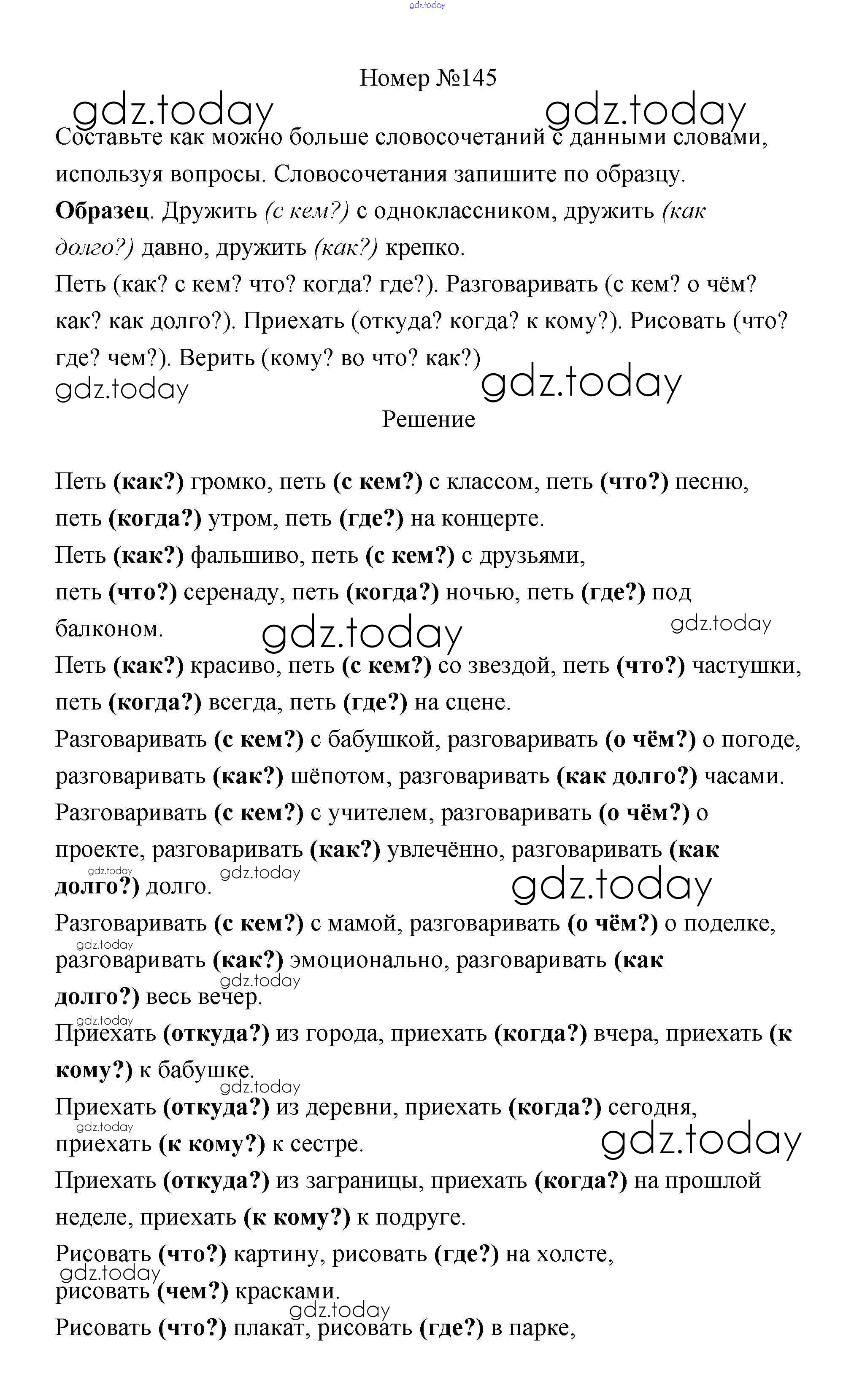 На страницах сайта gdz.today вы найдете учебный и вспомогательный материал, направленный на улучшения знаний школьной программы. ГДЗ - онлайн мир знаний Решение к части 1 145 Учебнику по Русскому языку для 4 класса Климанова, Бабушкина Просвещение Перспектива 2014