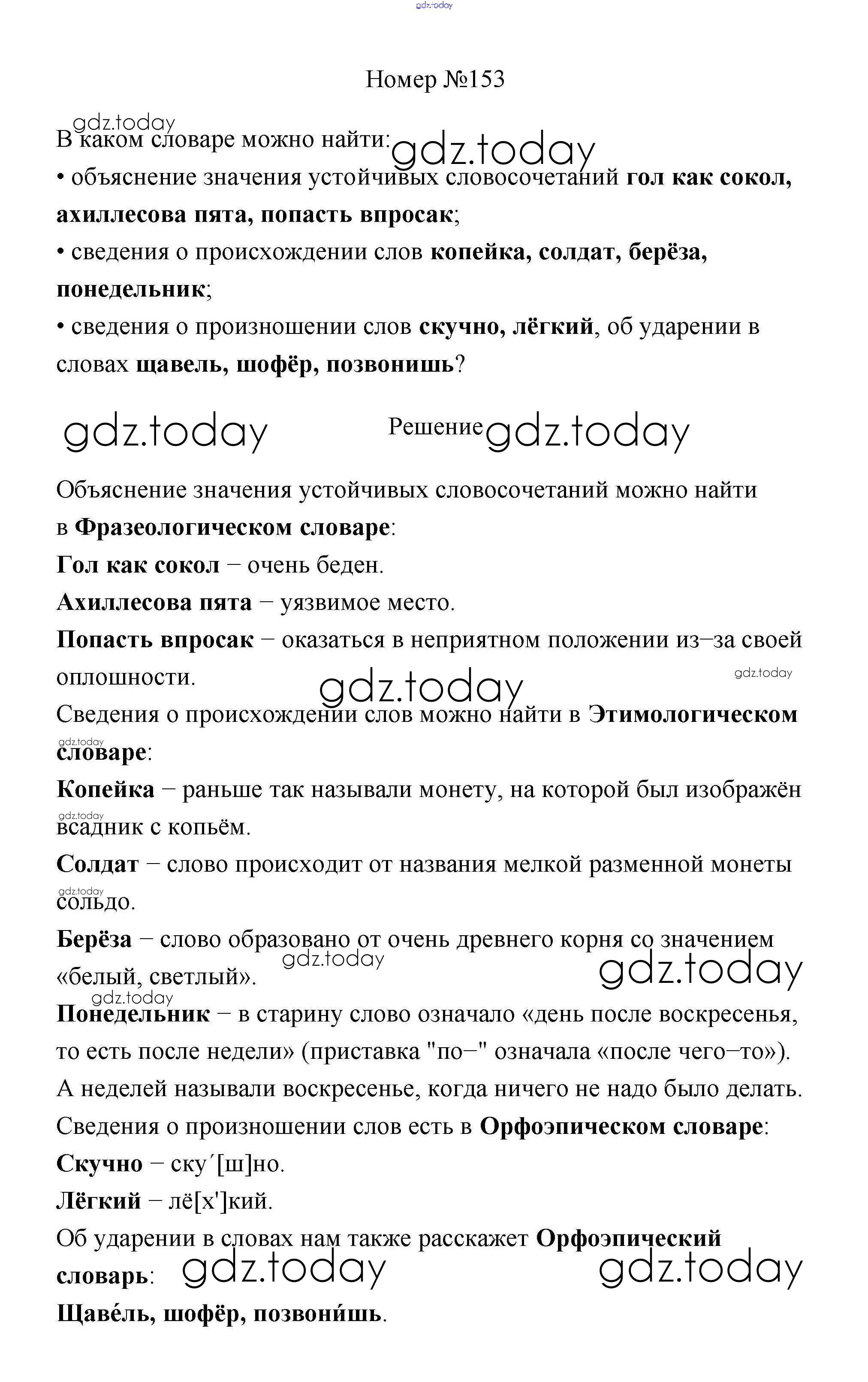 Ответы к Решение к части 1 153 Учебнику по Русскому языку для 4 класса Климанова, Бабушкина Просвещение Перспектива 2014