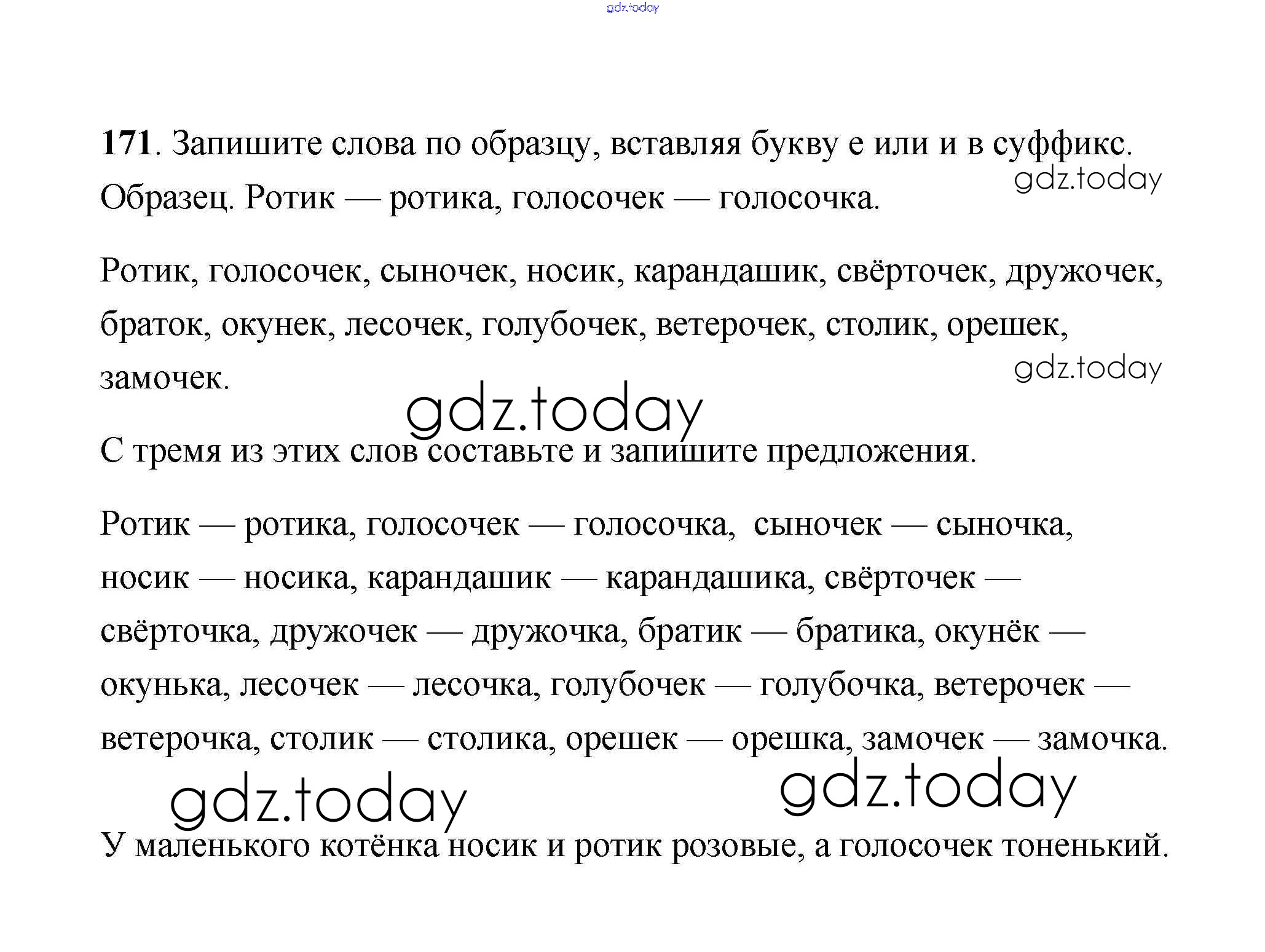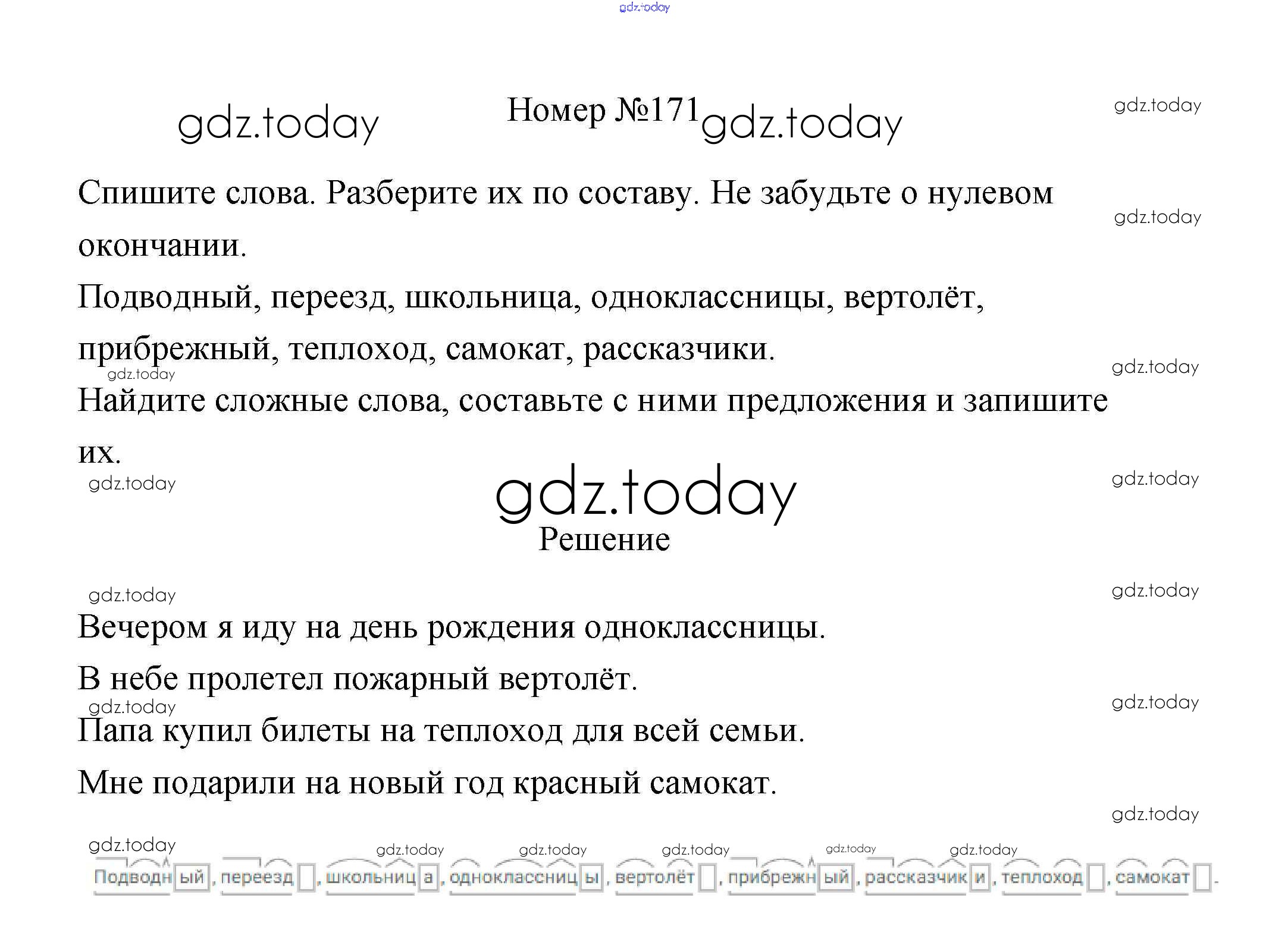 На страницах сайта gdz.today вы найдете учебный и вспомогательный материал, направленный на улучшения знаний школьной программы. ГДЗ - онлайн мир знаний Решение к части 1 171 Учебнику по Русскому языку для 4 класса Климанова, Бабушкина Просвещение Перспектива 2014