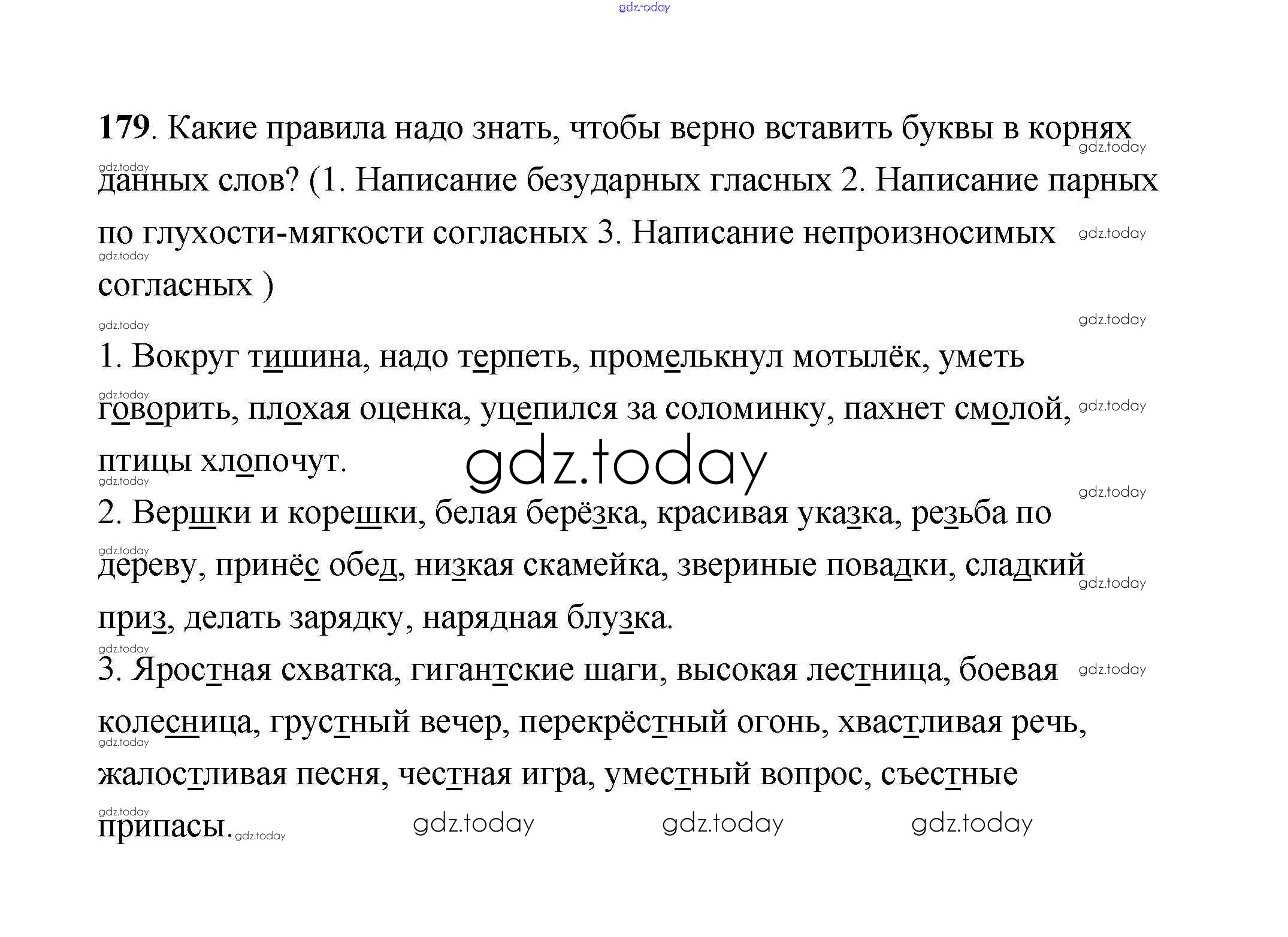 На страницах сайта gdz.today вы найдете учебный и вспомогательный материал, направленный на улучшения знаний школьной программы. ГДЗ - онлайн мир знаний Решение к части 1 179 Учебнику по Русскому языку для 4 класса Климанова, Бабушкина Просвещение Перспектива 2014