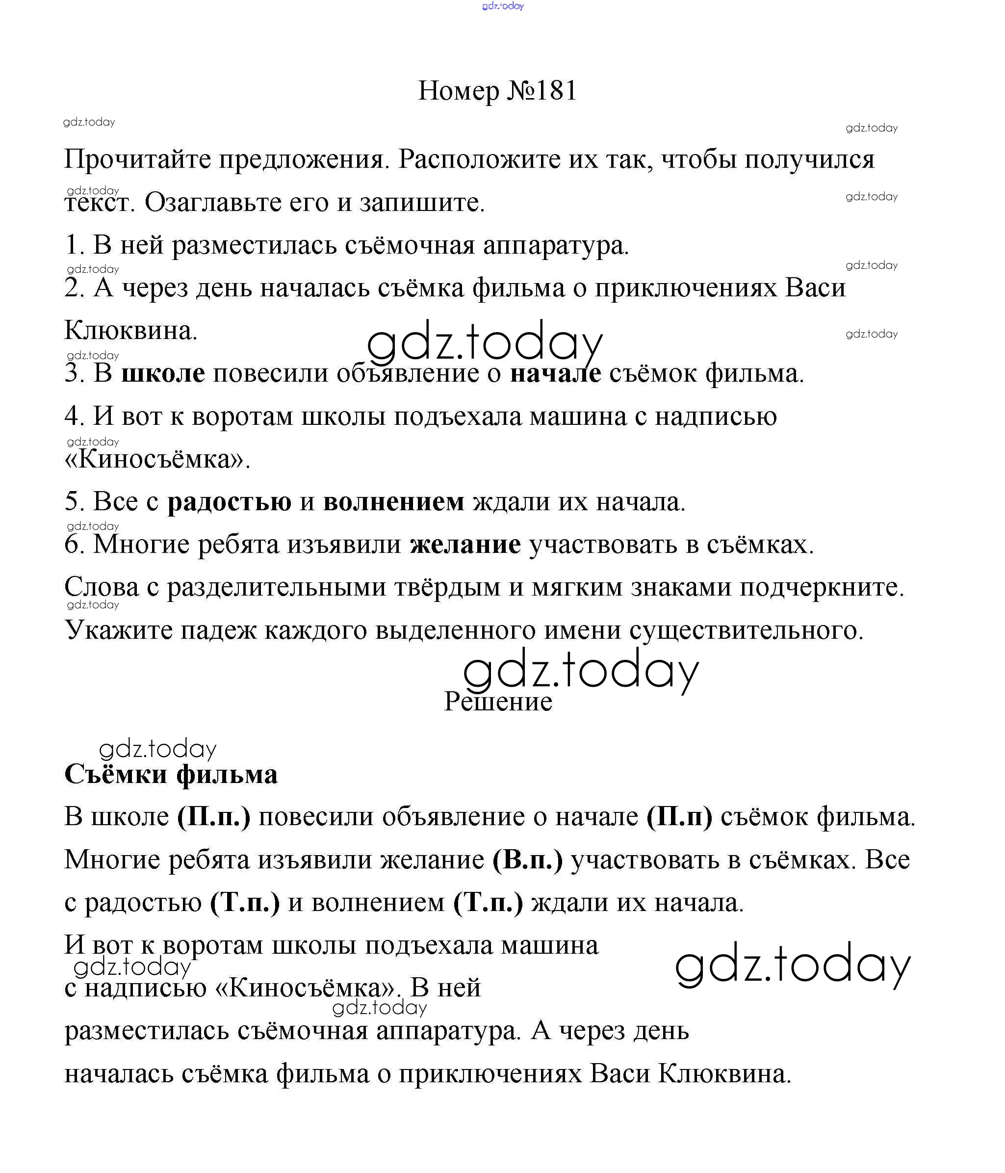 На страницах сайта gdz.today вы найдете учебный и вспомогательный материал, направленный на улучшения знаний школьной программы. ГДЗ - онлайн мир знаний Решение к части 1 181 Учебнику по Русскому языку для 4 класса Климанова, Бабушкина Просвещение Перспектива 2014