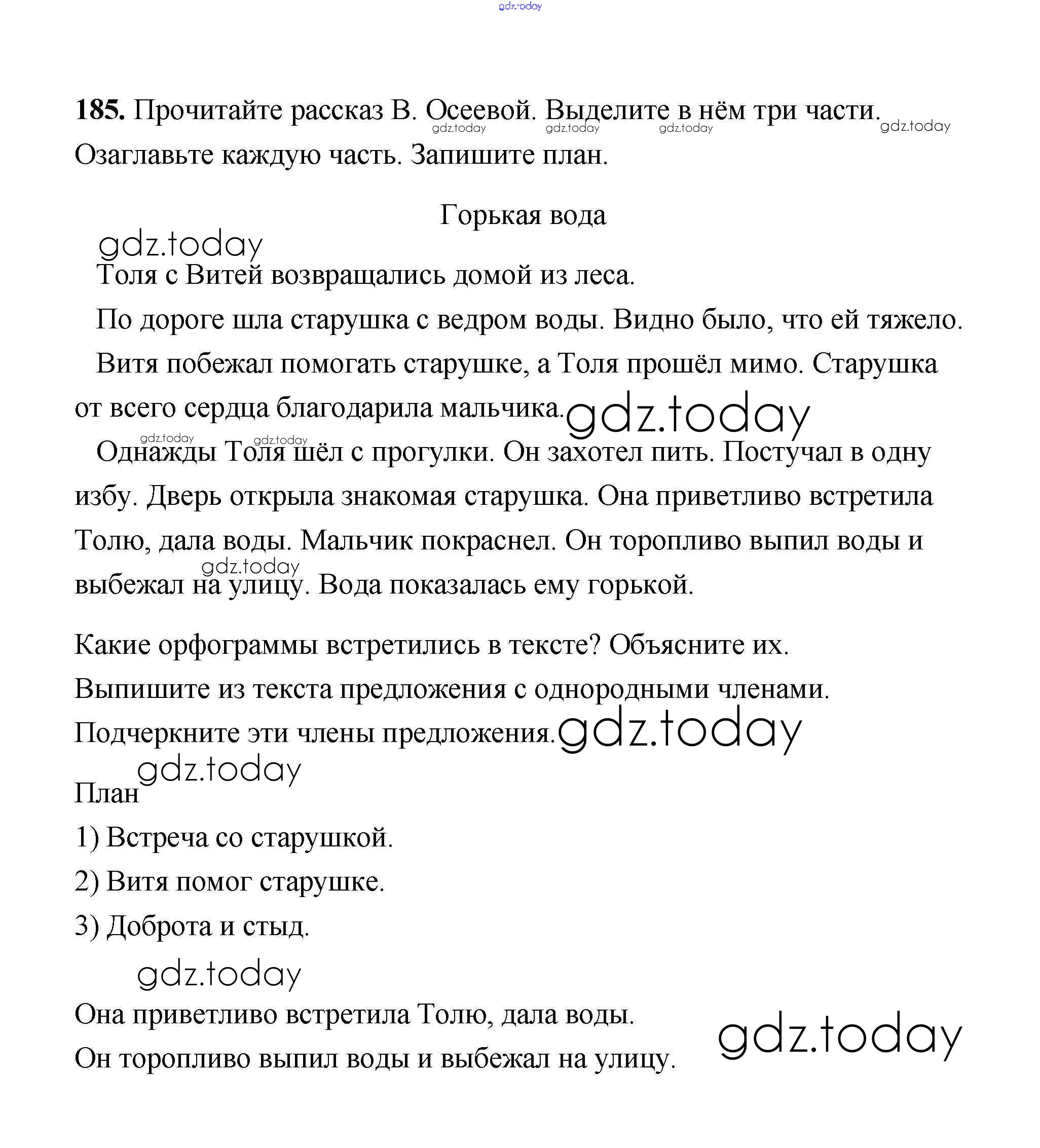 На страницах сайта gdz.today вы найдете учебный и вспомогательный материал, направленный на улучшения знаний школьной программы. ГДЗ - онлайн мир знаний Решение к части 1 185 Учебнику по Русскому языку для 4 класса Климанова, Бабушкина Просвещение Перспектива 2014