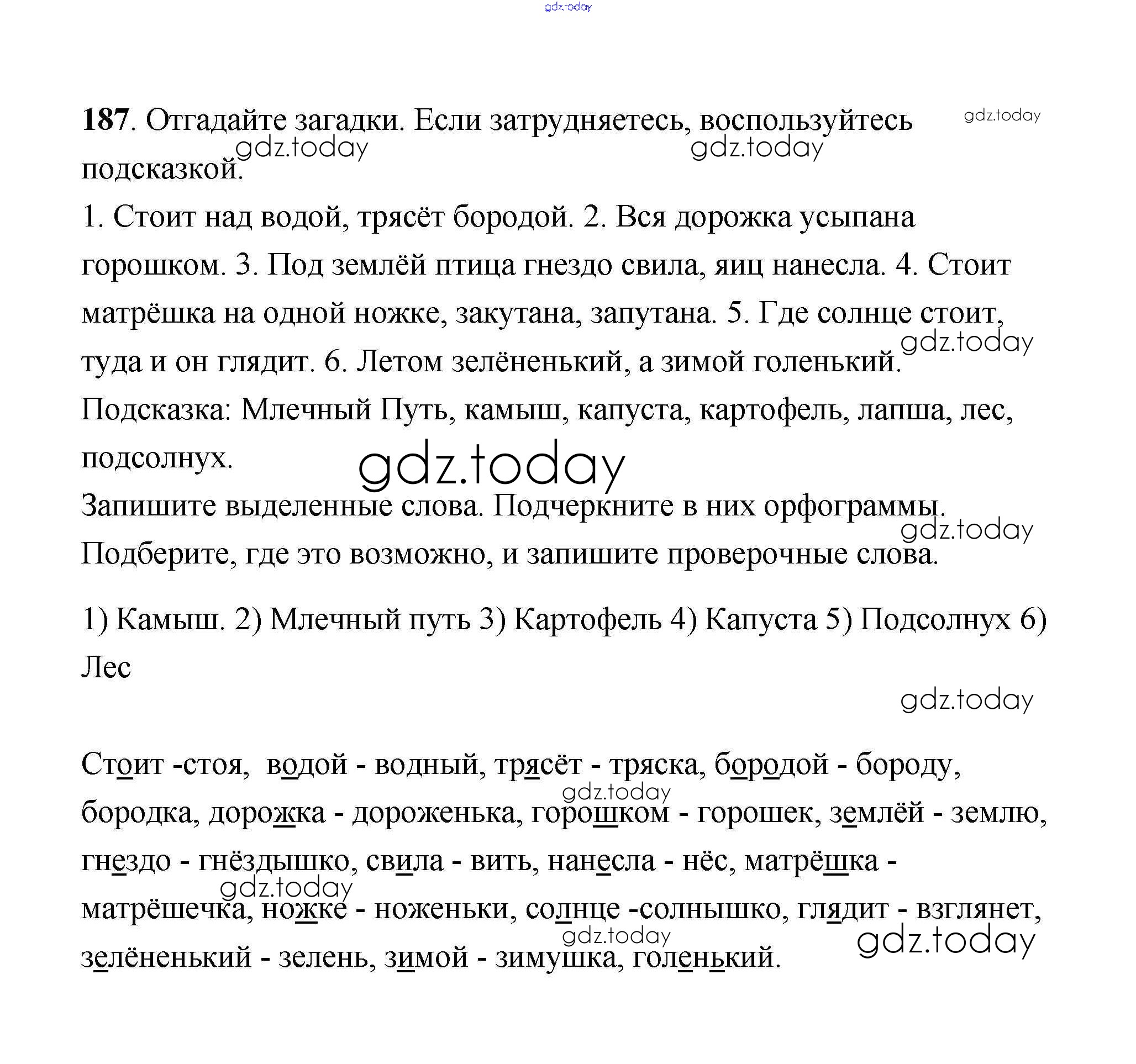 На страницах сайта gdz.today вы найдете учебный и вспомогательный материал, направленный на улучшения знаний школьной программы. ГДЗ - онлайн мир знаний Решение к части 1 187 Учебнику по Русскому языку для 4 класса Климанова, Бабушкина Просвещение Перспектива 2014