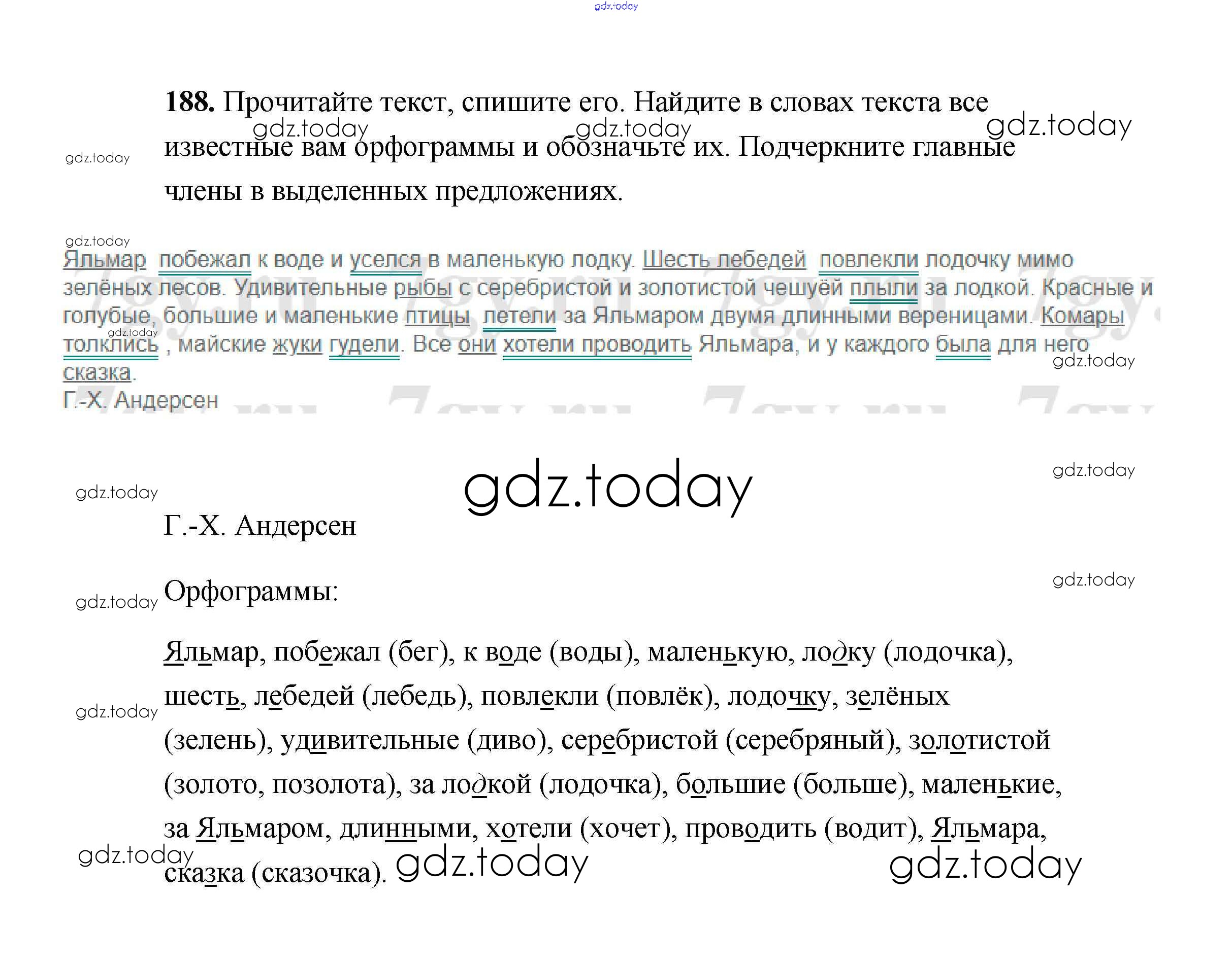 На страницах сайта gdz.today вы найдете учебный и вспомогательный материал, направленный на улучшения знаний школьной программы. ГДЗ - онлайн мир знаний Решение к части 1 188 Учебнику по Русскому языку для 4 класса Климанова, Бабушкина Просвещение Перспектива 2014