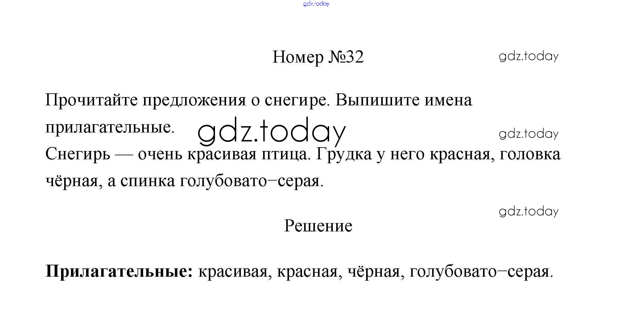 На страницах сайта gdz.today вы найдете учебный и вспомогательный материал, направленный на улучшения знаний школьной программы. ГДЗ - онлайн мир знаний Решение к части 1 32 Учебнику по Русскому языку для 4 класса Климанова, Бабушкина Просвещение Перспектива 2014