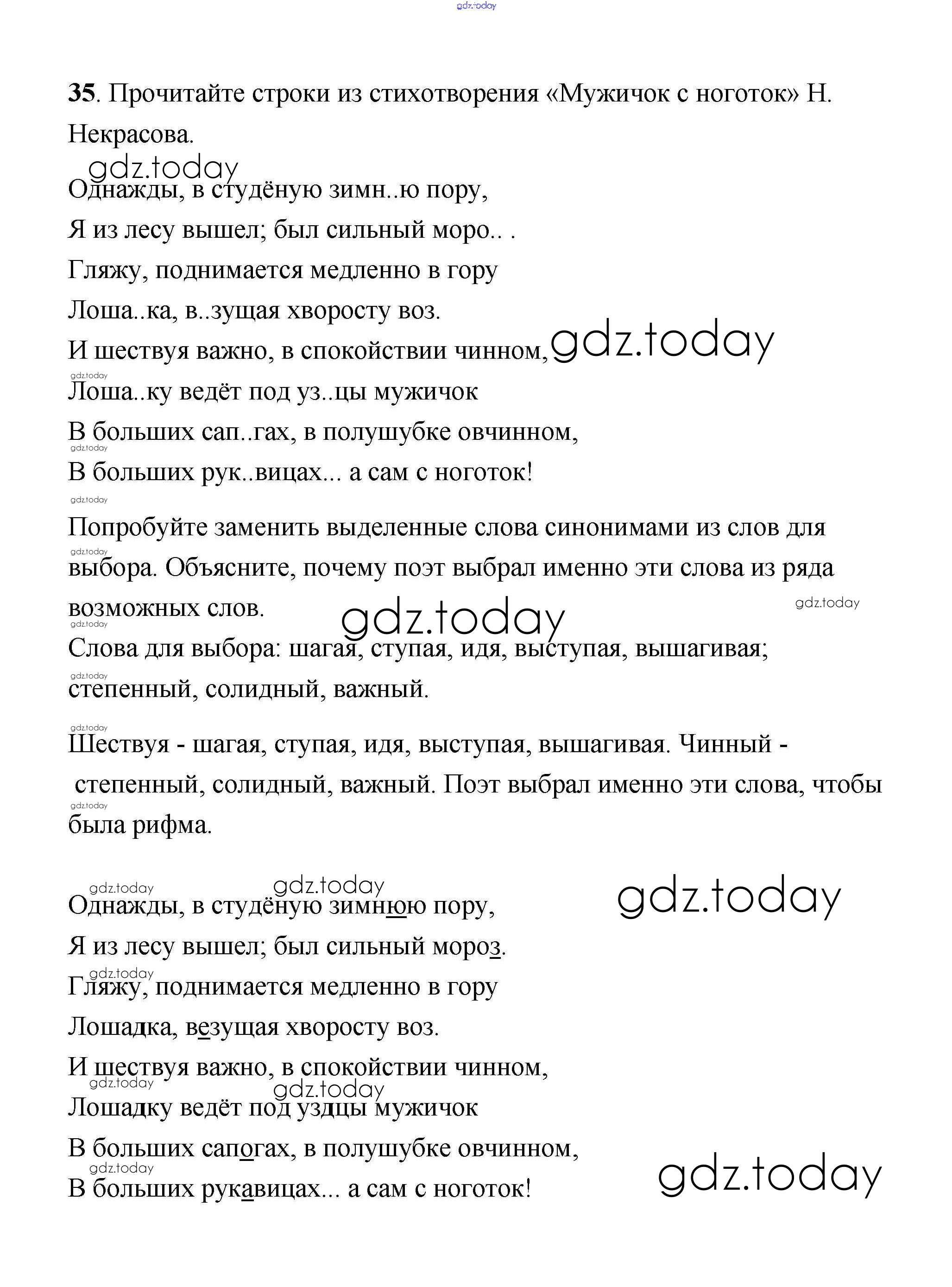 На страницах сайта gdz.today вы найдете учебный и вспомогательный материал, направленный на улучшения знаний школьной программы. ГДЗ - онлайн мир знаний Решение к части 1 35 Учебнику по Русскому языку для 4 класса Климанова, Бабушкина Просвещение Перспектива 2014