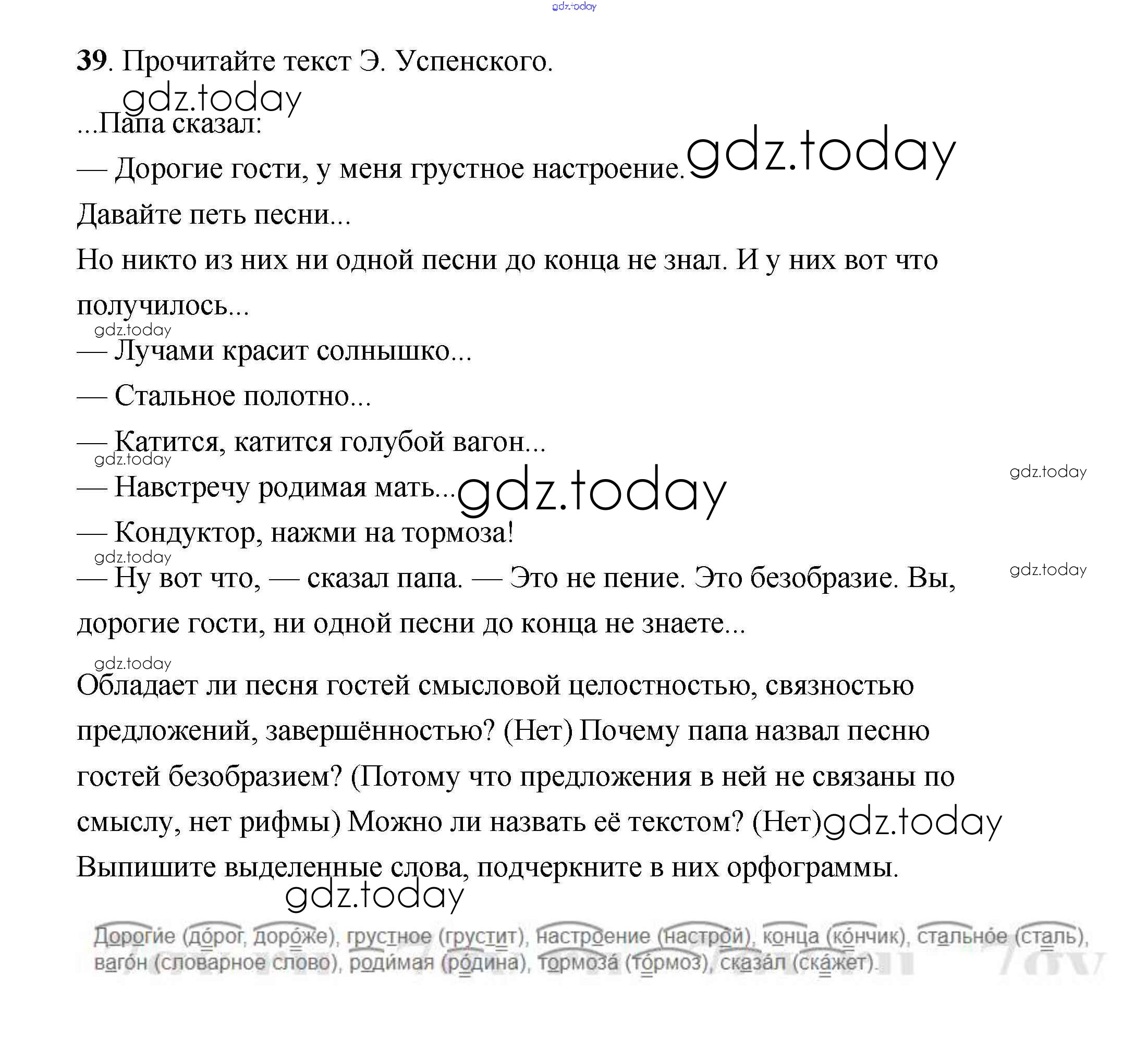 На страницах сайта gdz.today вы найдете учебный и вспомогательный материал, направленный на улучшения знаний школьной программы. ГДЗ - онлайн мир знаний Решение к части 1 39 Учебнику по Русскому языку для 4 класса Климанова, Бабушкина Просвещение Перспектива 2014