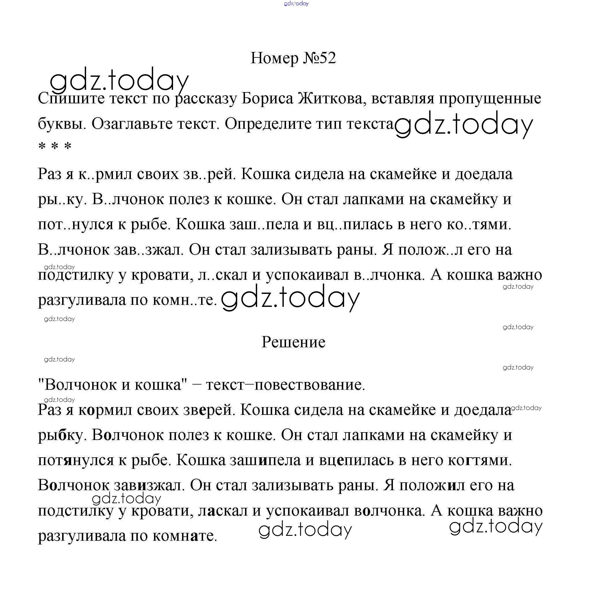 На страницах сайта gdz.today вы найдете учебный и вспомогательный материал, направленный на улучшения знаний школьной программы. ГДЗ - онлайн мир знаний Решение к части 1 52 Учебнику по Русскому языку для 4 класса Климанова, Бабушкина Просвещение Перспектива 2014