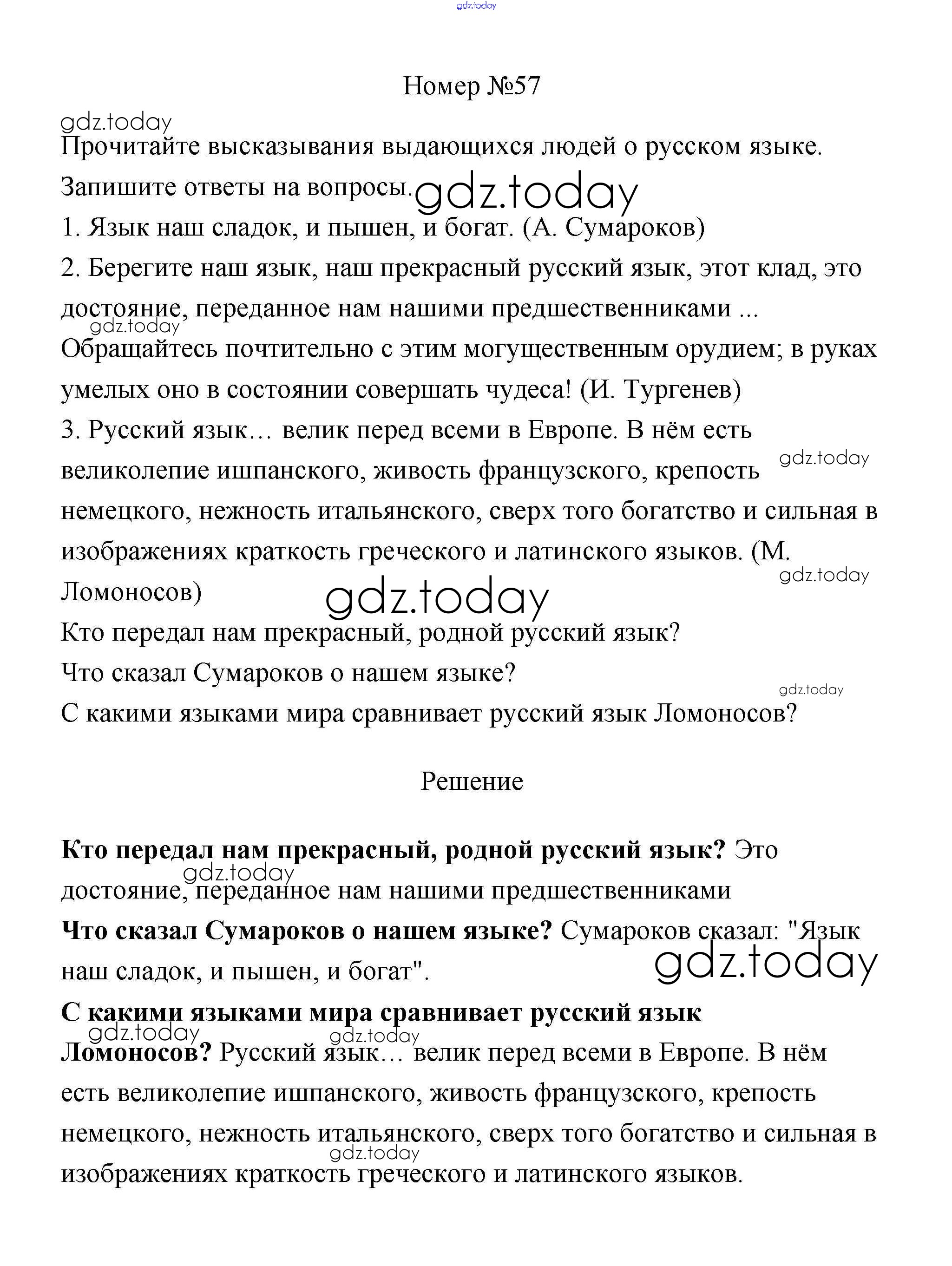 На страницах сайта gdz.today вы найдете учебный и вспомогательный материал, направленный на улучшения знаний школьной программы. ГДЗ - онлайн мир знаний Решение к части 1 57 Учебнику по Русскому языку для 4 класса Климанова, Бабушкина Просвещение Перспектива 2014
