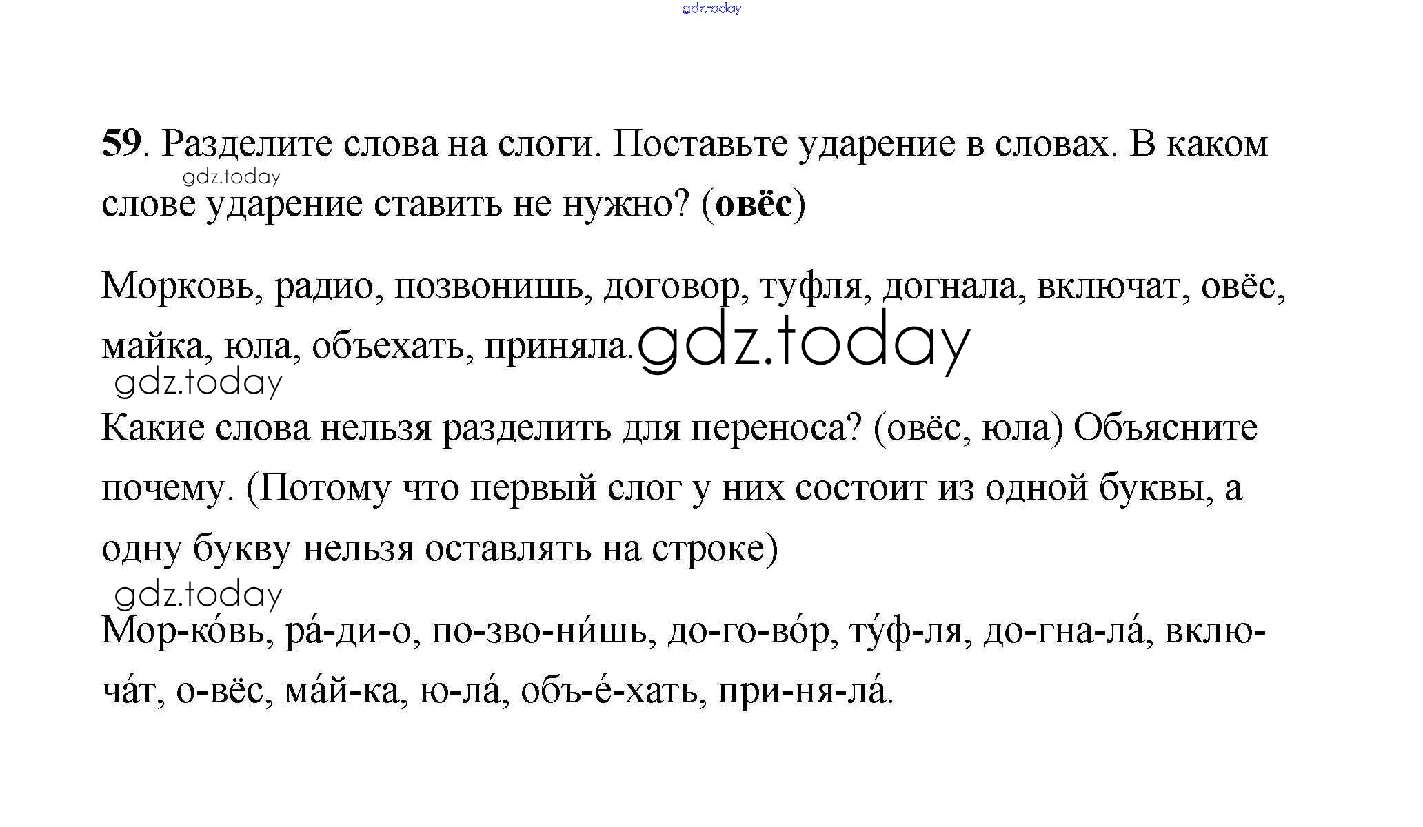 На страницах сайта gdz.today вы найдете учебный и вспомогательный материал, направленный на улучшения знаний школьной программы. ГДЗ - онлайн мир знаний Решение к части 1 59 Учебнику по Русскому языку для 4 класса Климанова, Бабушкина Просвещение Перспектива 2014