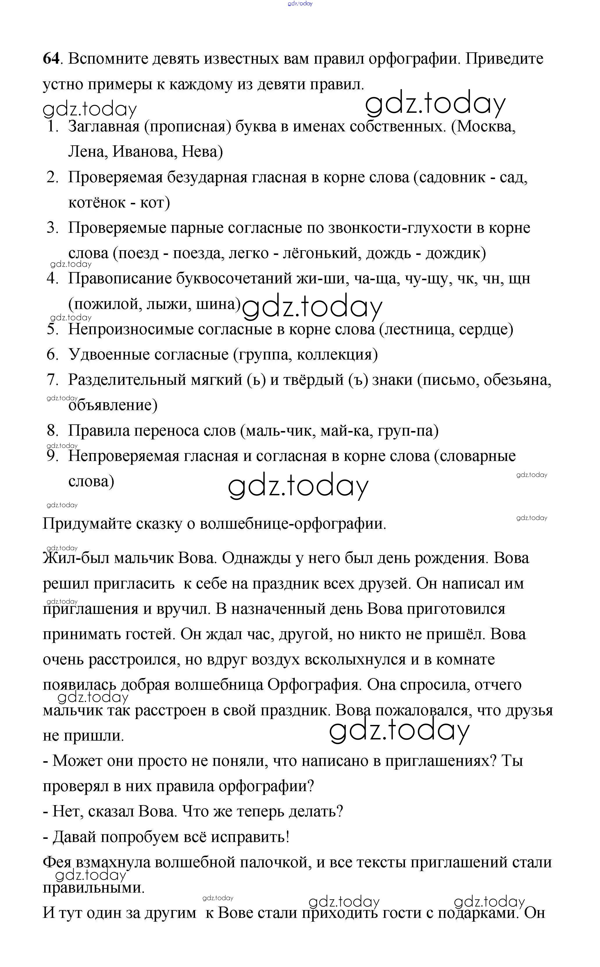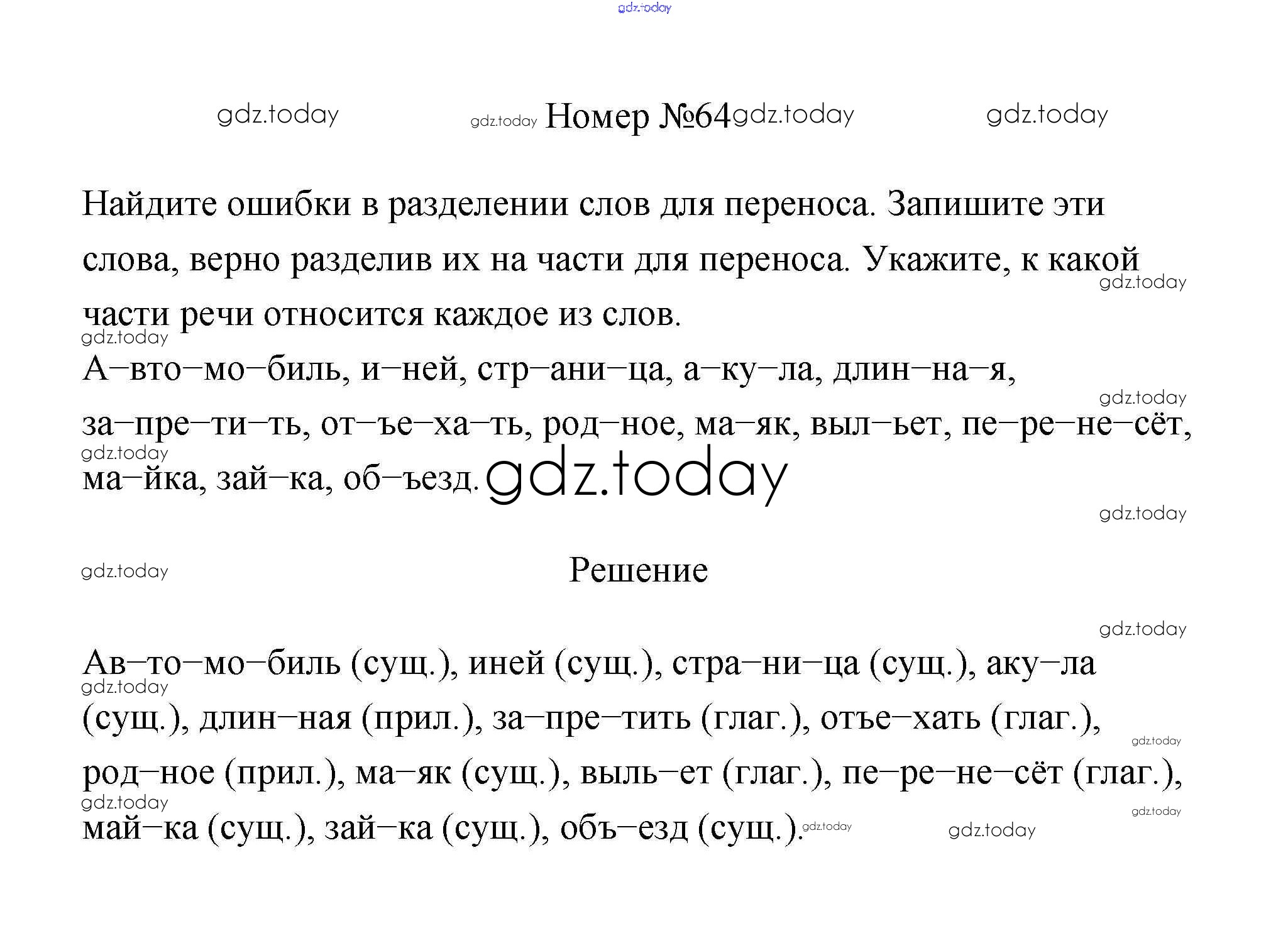 На страницах сайта gdz.today вы найдете учебный и вспомогательный материал, направленный на улучшения знаний школьной программы. ГДЗ - онлайн мир знаний Решение к части 1 64 Учебнику по Русскому языку для 4 класса Климанова, Бабушкина Просвещение Перспектива 2014
