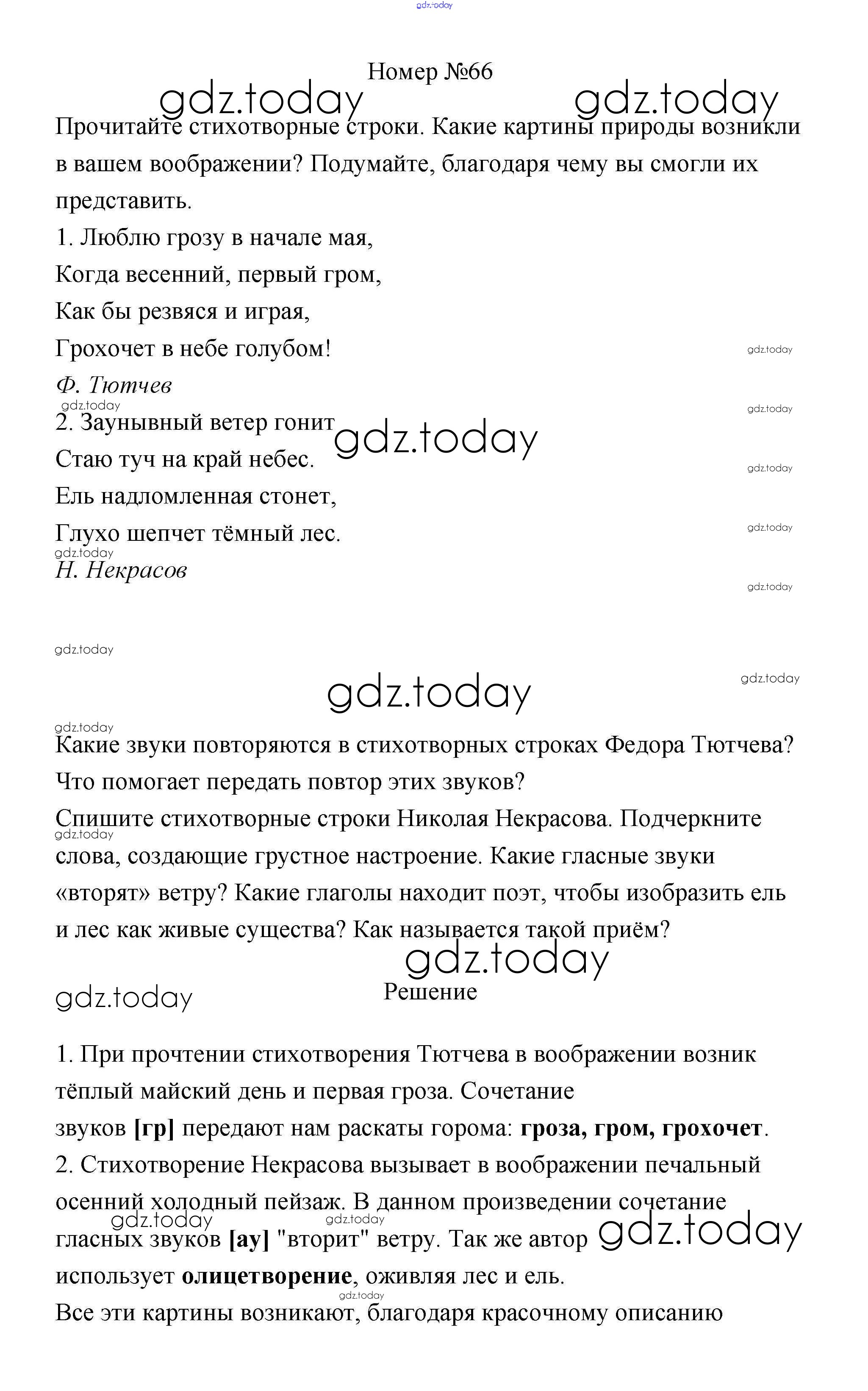 Ответы к Решение к части 1 66 Учебнику по Русскому языку для 4 класса Климанова, Бабушкина Просвещение Перспектива 2014