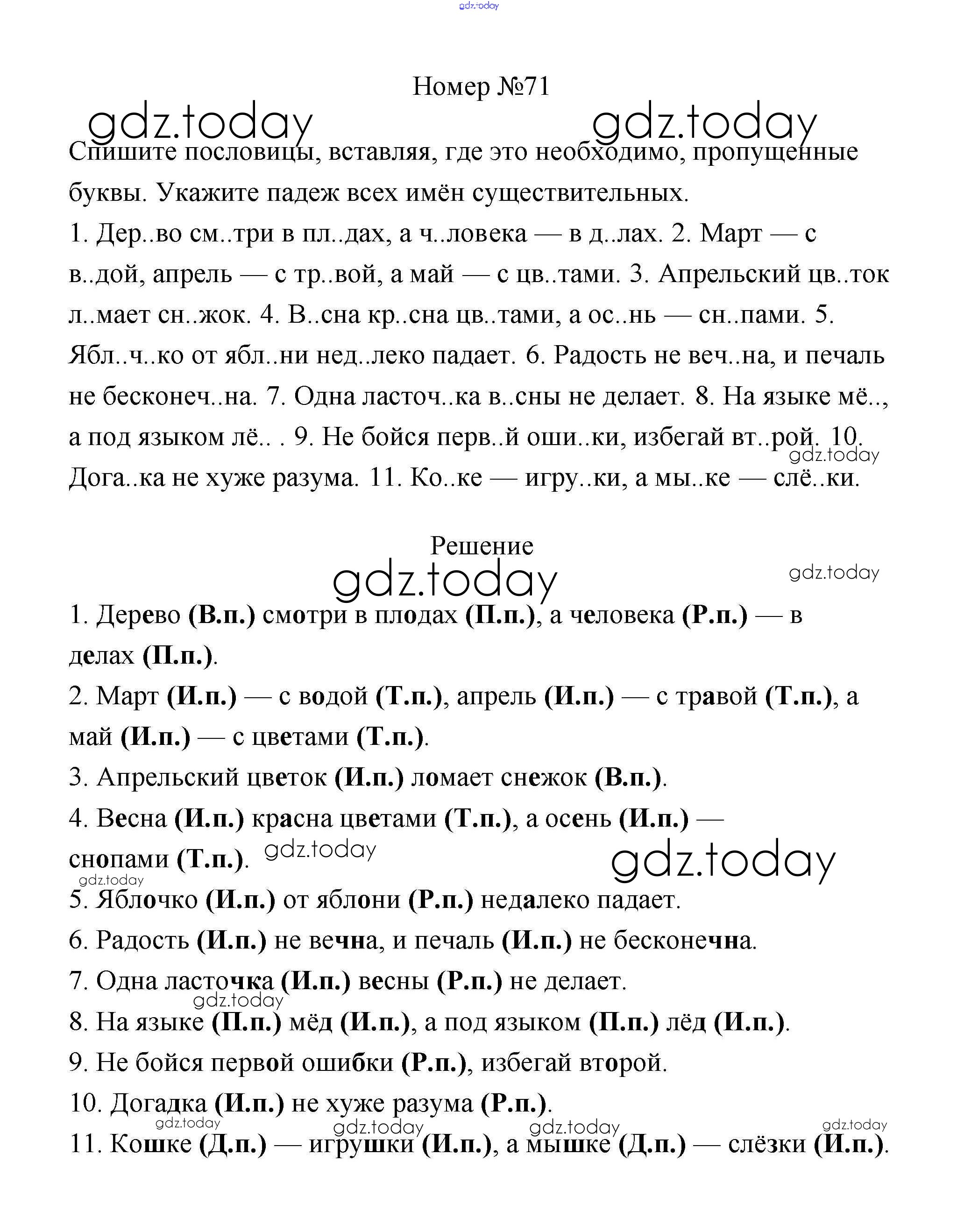 На страницах сайта gdz.today вы найдете учебный и вспомогательный материал, направленный на улучшения знаний школьной программы. ГДЗ - онлайн мир знаний Решение к части 1 71 Учебнику по Русскому языку для 4 класса Климанова, Бабушкина Просвещение Перспектива 2014