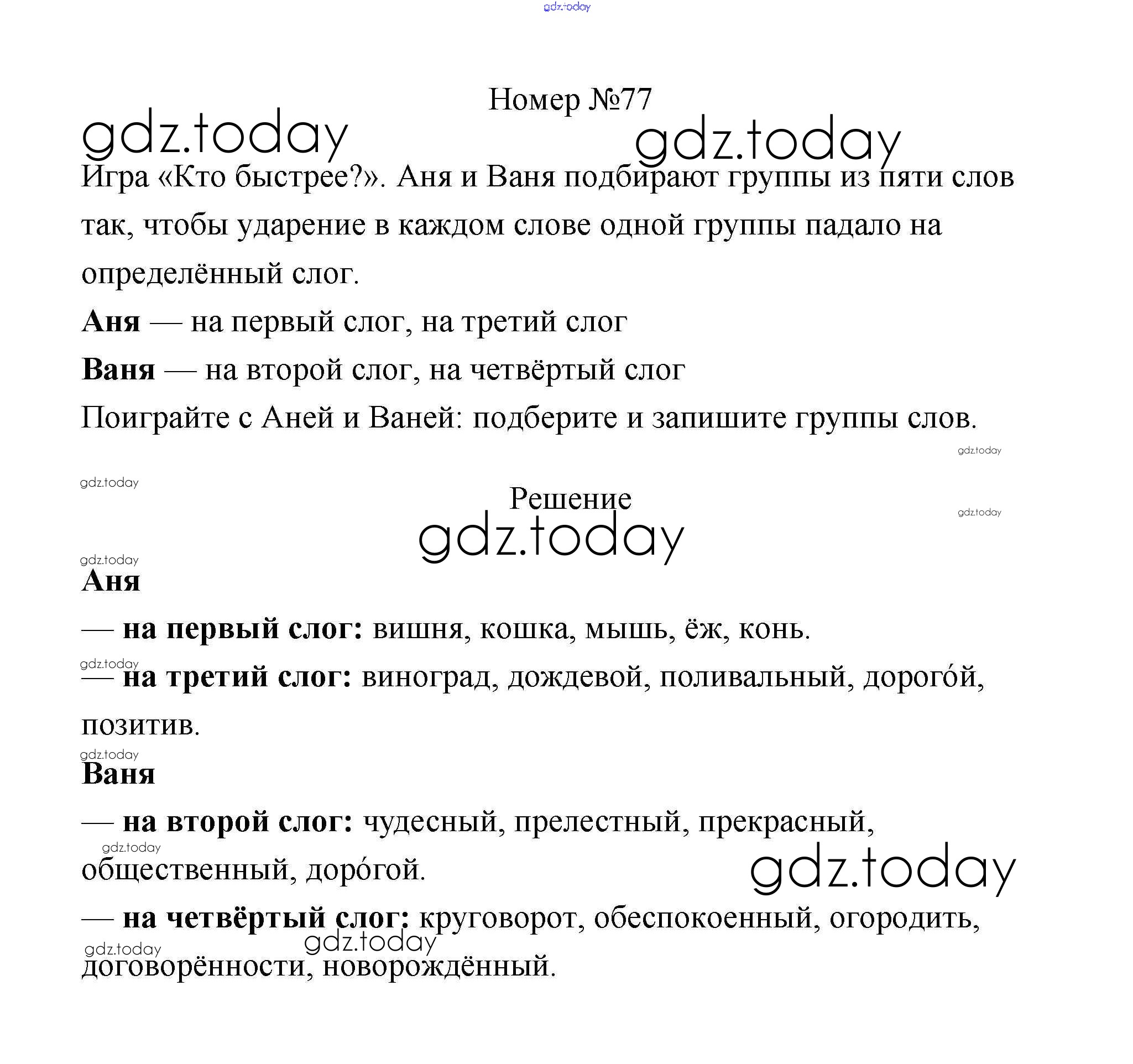 На страницах сайта gdz.today вы найдете учебный и вспомогательный материал, направленный на улучшения знаний школьной программы. ГДЗ - онлайн мир знаний Решение к части 1 77 Учебнику по Русскому языку для 4 класса Климанова, Бабушкина Просвещение Перспектива 2014