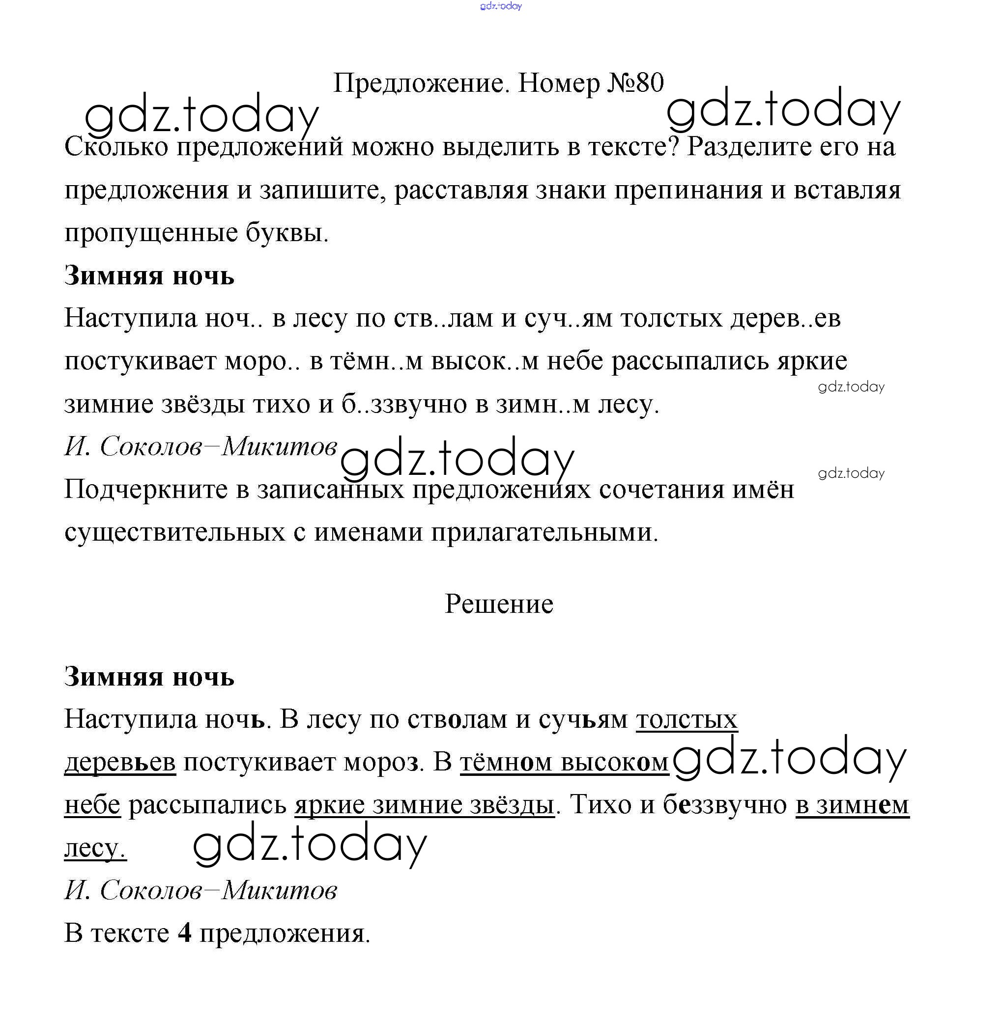 На страницах сайта gdz.today вы найдете учебный и вспомогательный материал, направленный на улучшения знаний школьной программы. ГДЗ - онлайн мир знаний Решение к части 1 80 Учебнику по Русскому языку для 4 класса Климанова, Бабушкина Просвещение Перспектива 2014