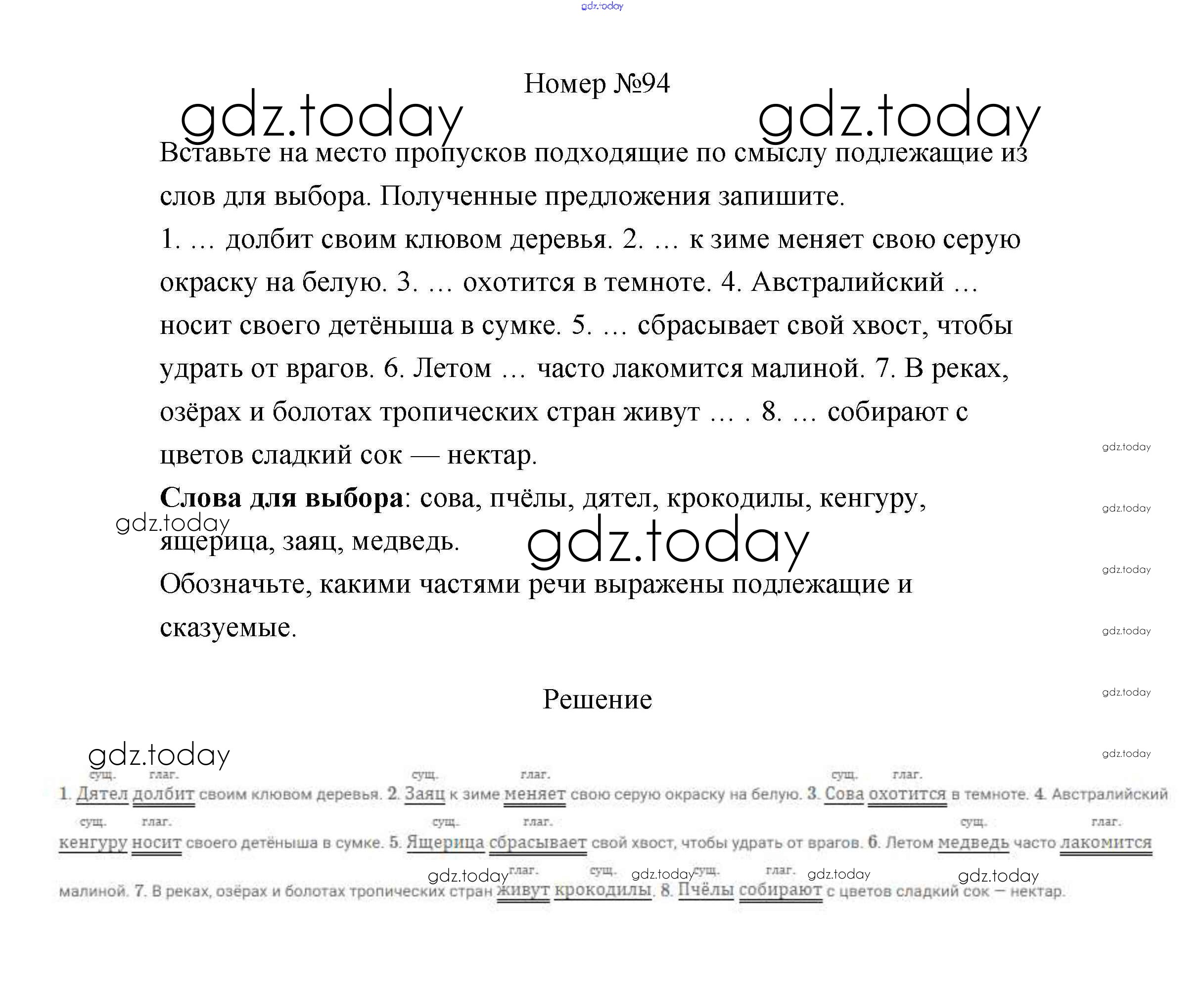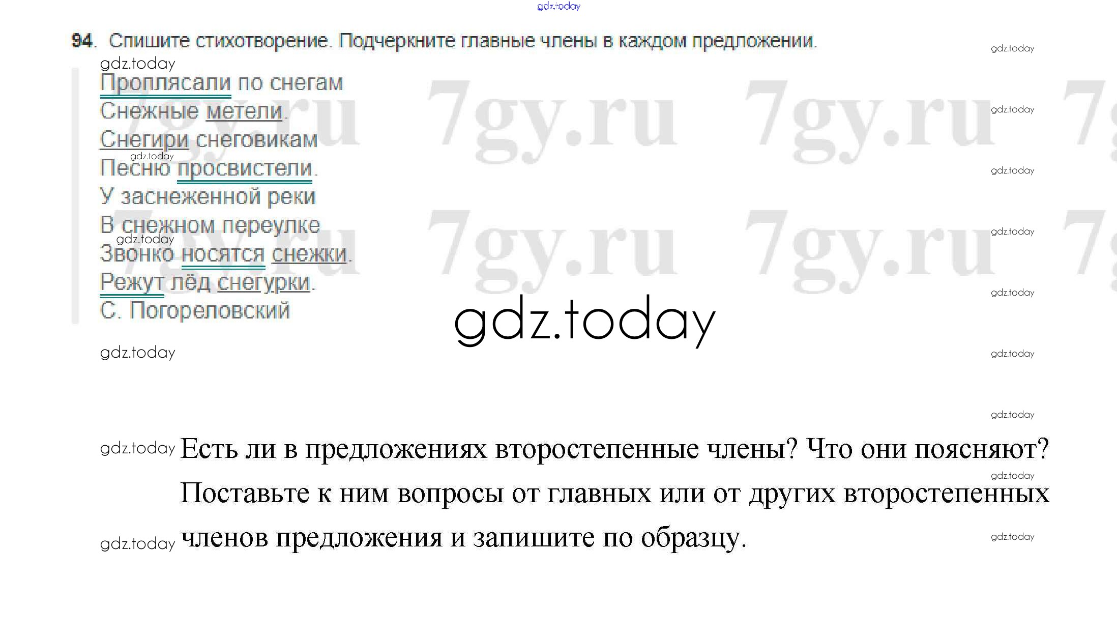 На страницах сайта gdz.today вы найдете учебный и вспомогательный материал, направленный на улучшения знаний школьной программы. ГДЗ - онлайн мир знаний Решение к части 1 94 Учебнику по Русскому языку для 4 класса Климанова, Бабушкина Просвещение Перспектива 2014