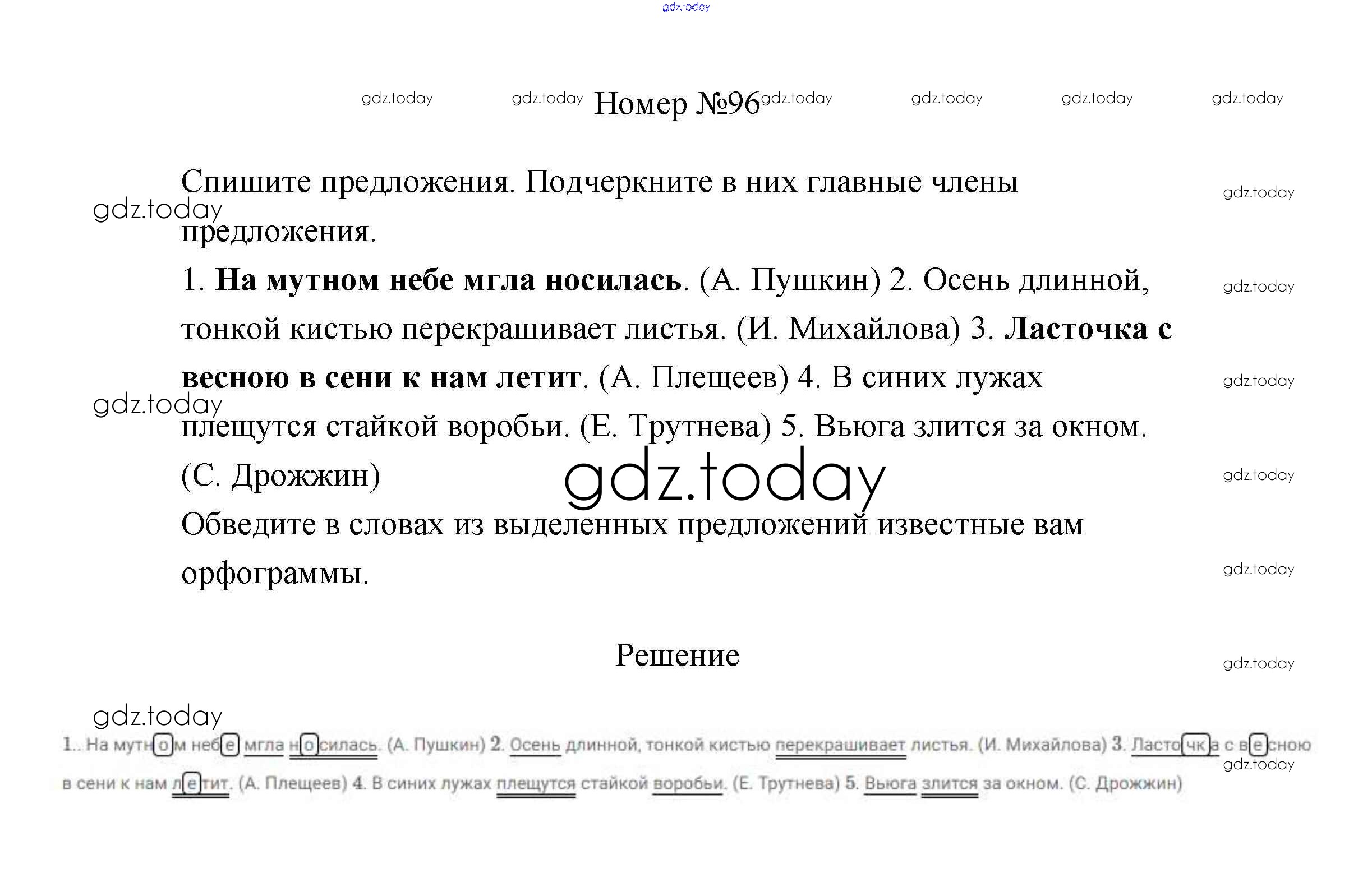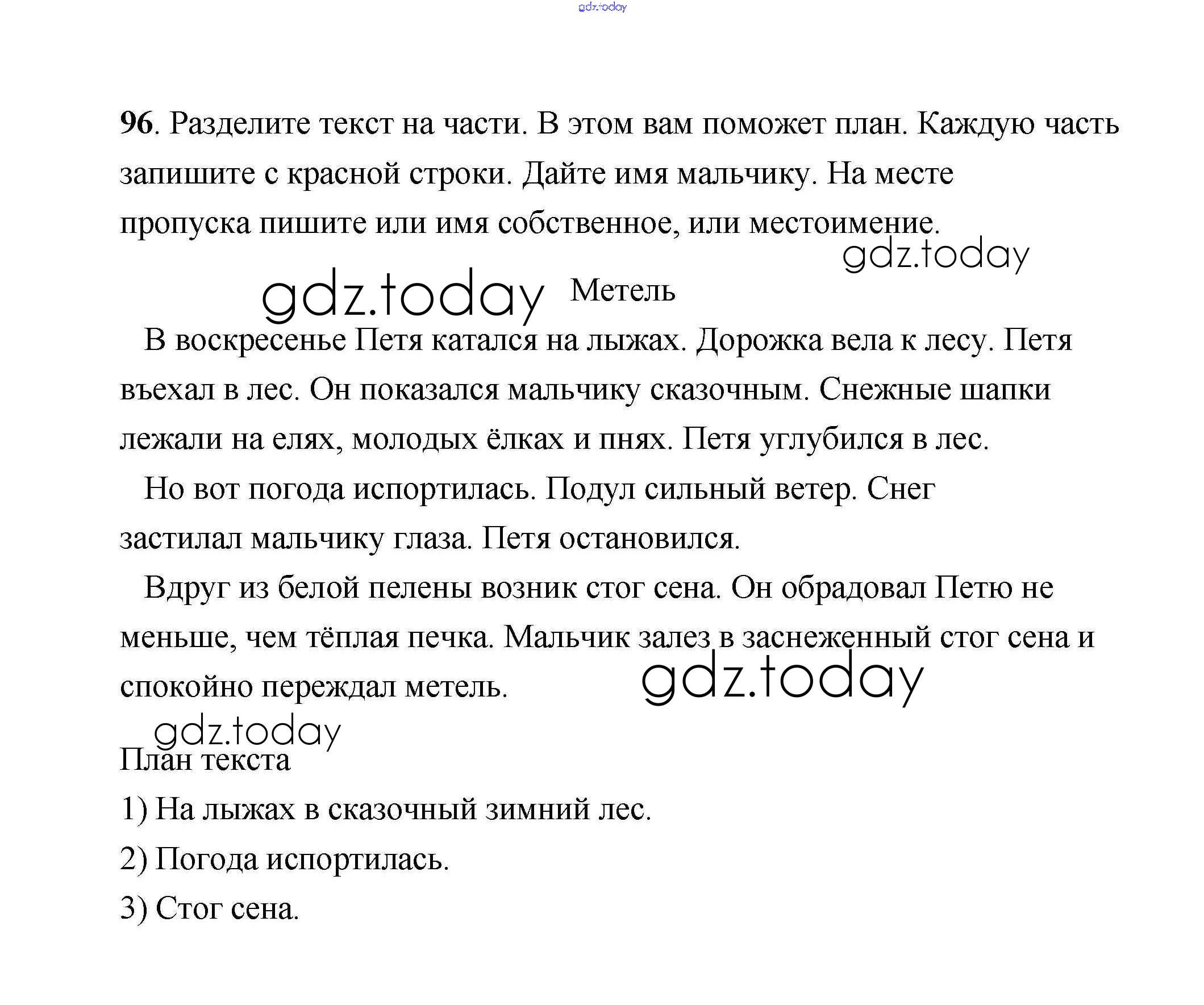 На страницах сайта gdz.today вы найдете учебный и вспомогательный материал, направленный на улучшения знаний школьной программы. ГДЗ - онлайн мир знаний Решение к части 1 96 Учебнику по Русскому языку для 4 класса Климанова, Бабушкина Просвещение Перспектива 2014