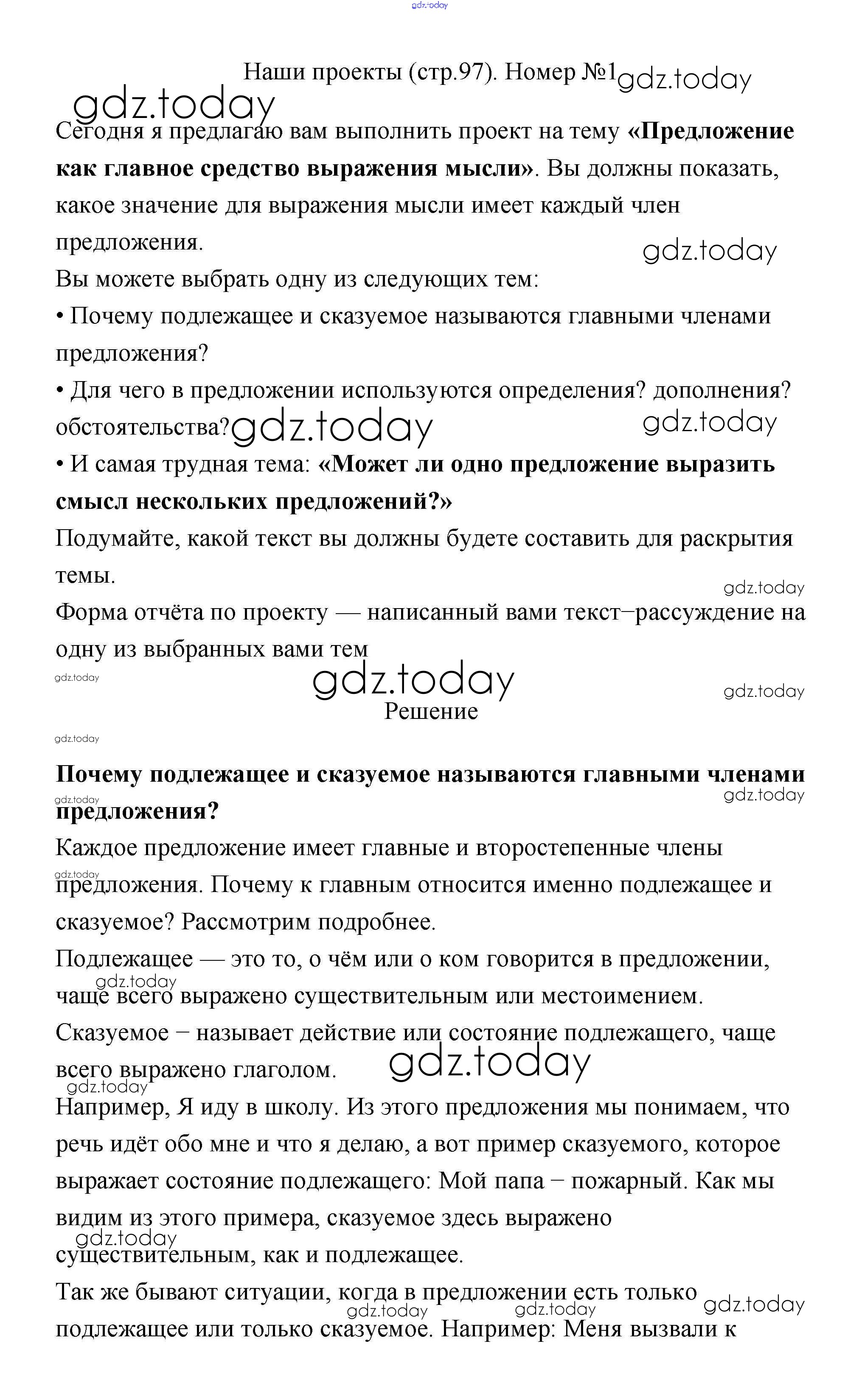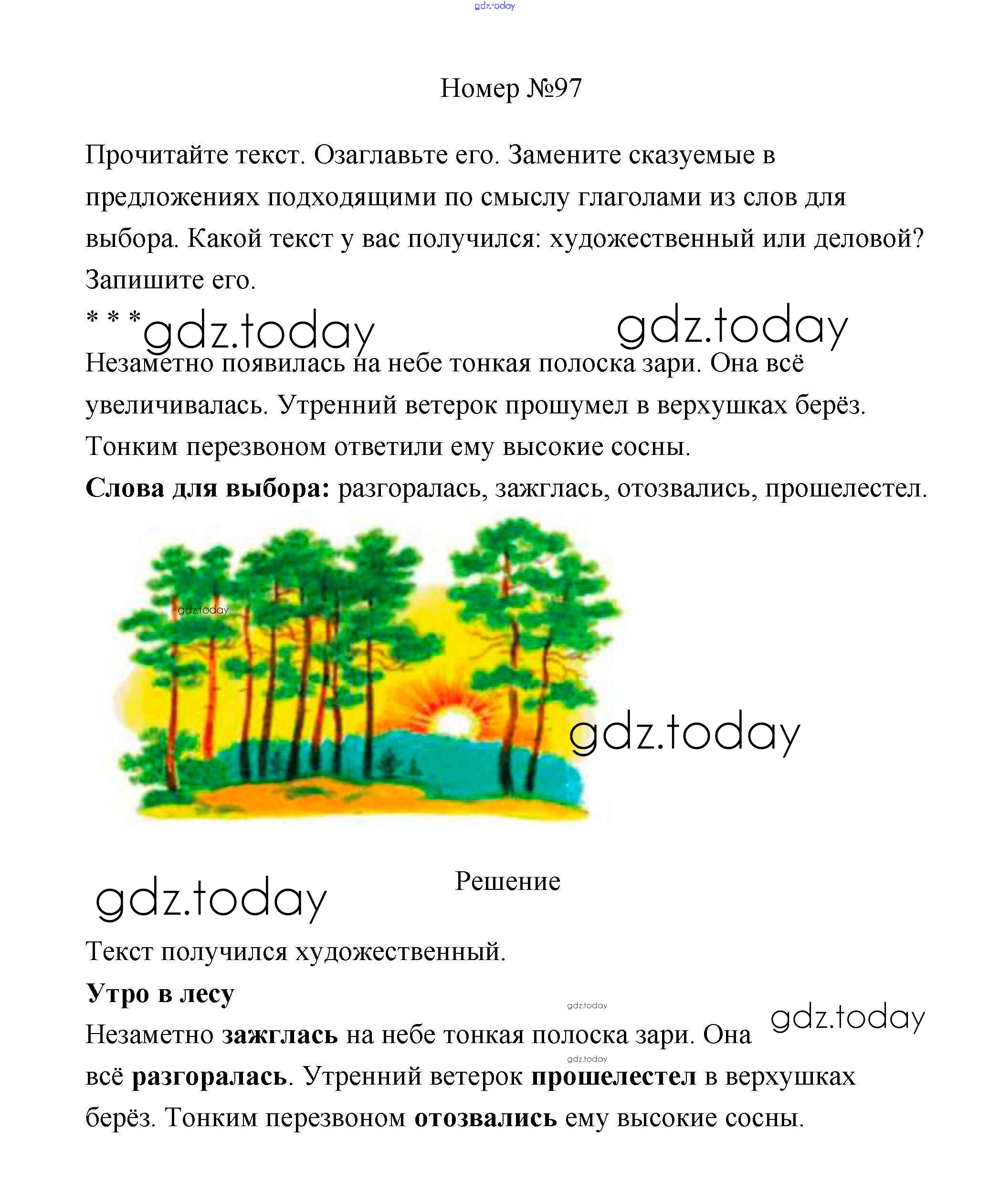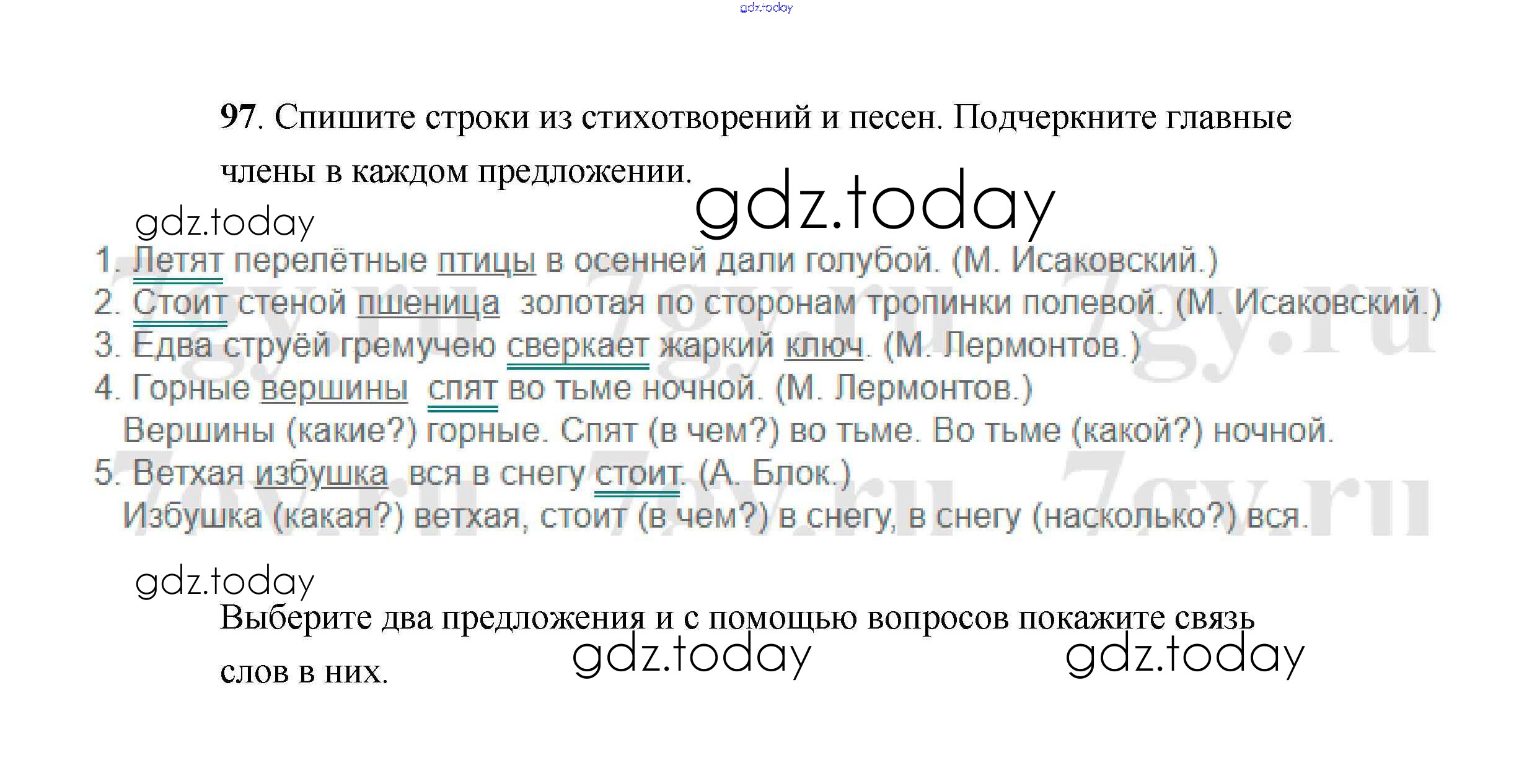 На страницах сайта gdz.today вы найдете учебный и вспомогательный материал, направленный на улучшения знаний школьной программы. ГДЗ - онлайн мир знаний Решение к части 1 97 Учебнику по Русскому языку для 4 класса Климанова, Бабушкина Просвещение Перспектива 2014