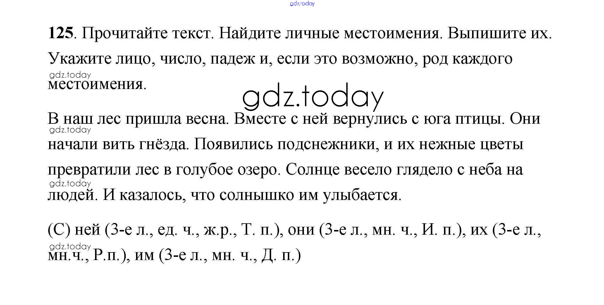 На страницах сайта gdz.today вы найдете учебный и вспомогательный материал, направленный на улучшения знаний школьной программы. ГДЗ - онлайн мир знаний Решение к части 2 125 Учебнику по Русскому языку для 4 класса Климанова, Бабушкина Просвещение Перспектива 2014