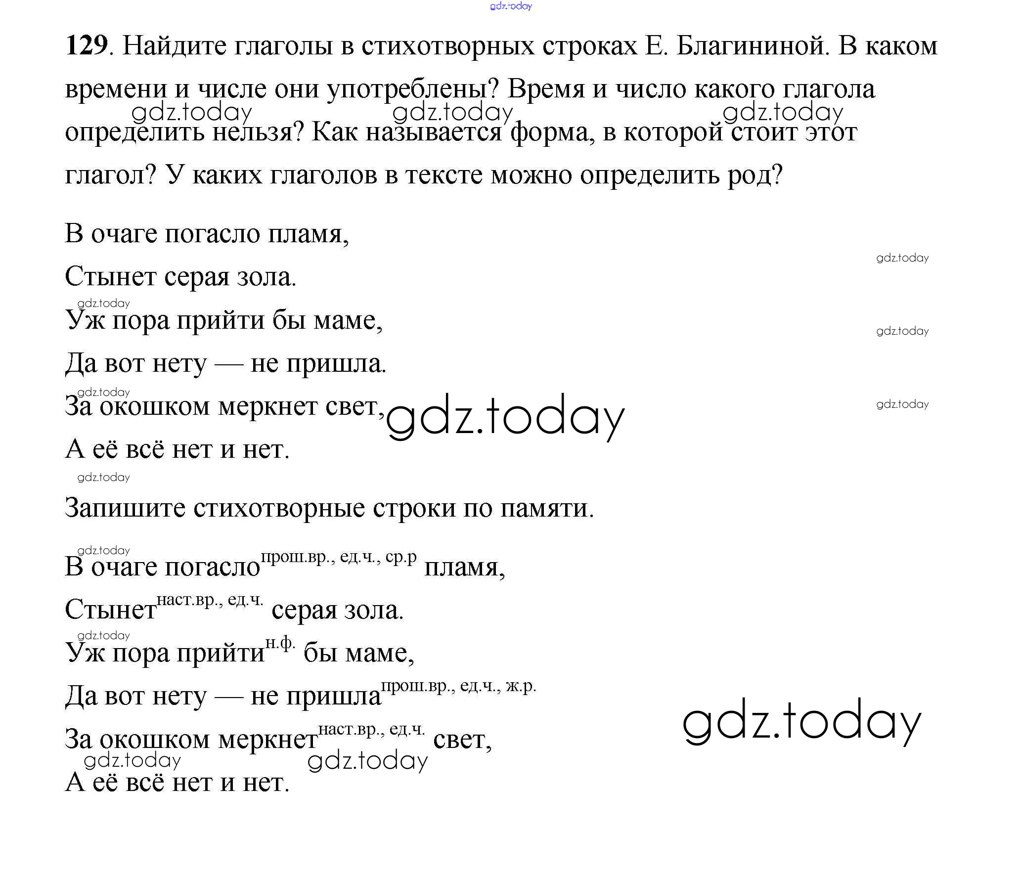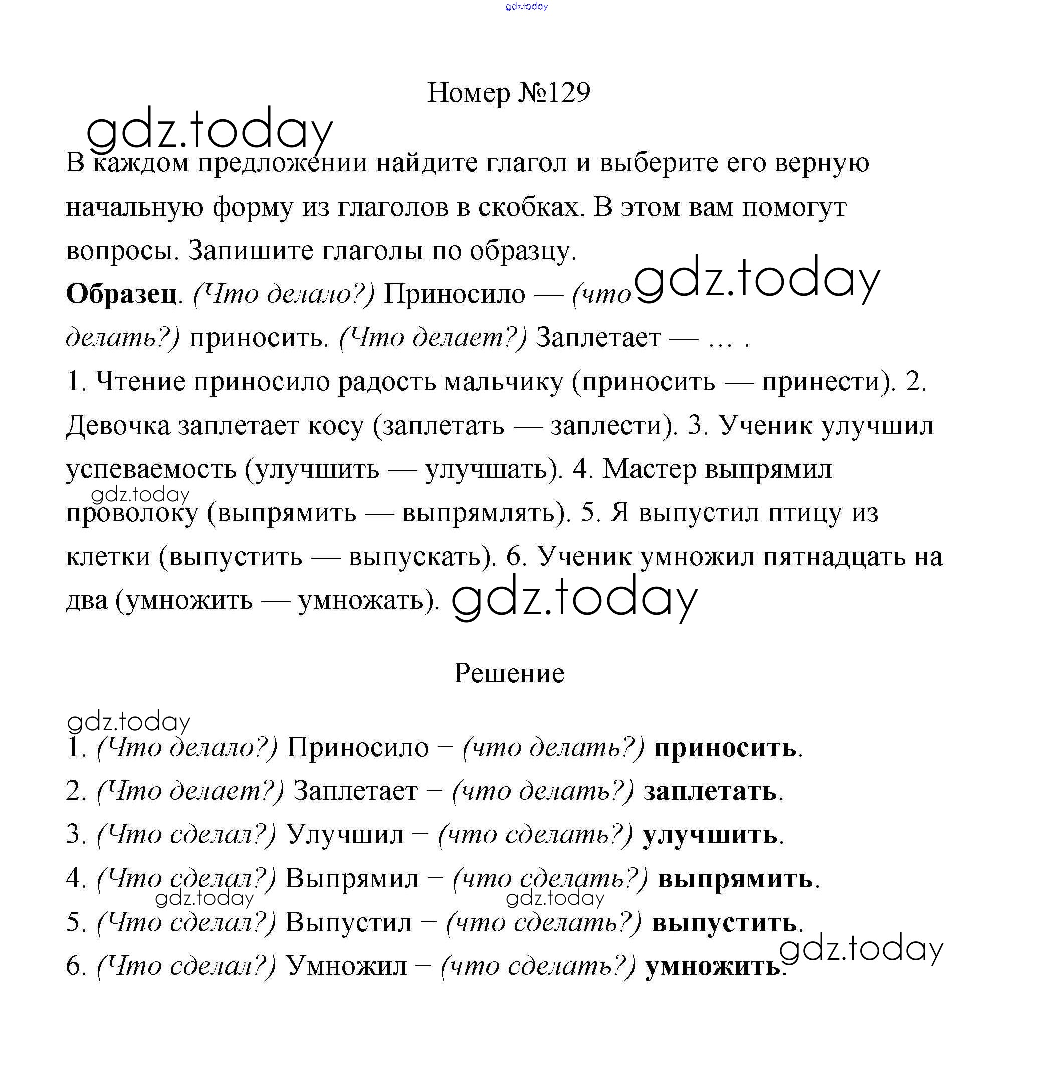 На страницах сайта gdz.today вы найдете учебный и вспомогательный материал, направленный на улучшения знаний школьной программы. ГДЗ - онлайн мир знаний Решение к части 2 129 Учебнику по Русскому языку для 4 класса Климанова, Бабушкина Просвещение Перспектива 2014