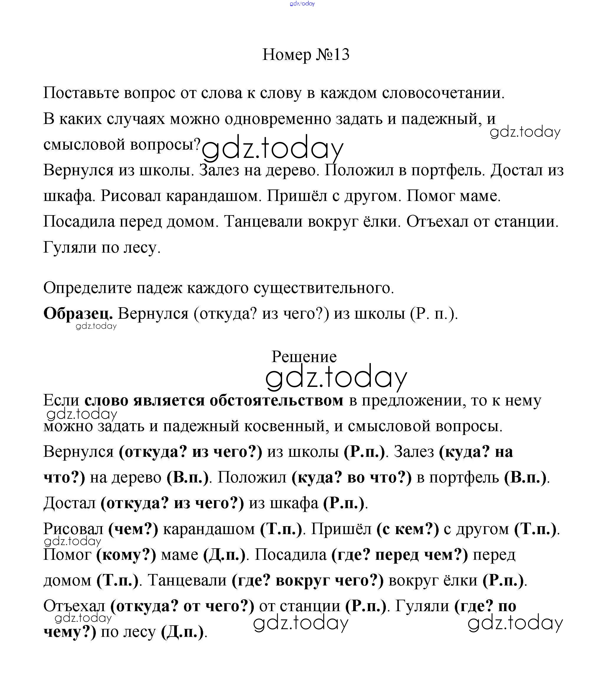 На страницах сайта gdz.today вы найдете учебный и вспомогательный материал, направленный на улучшения знаний школьной программы. ГДЗ - онлайн мир знаний Решение к части 2 13 Учебнику по Русскому языку для 4 класса Климанова, Бабушкина Просвещение Перспектива 2014