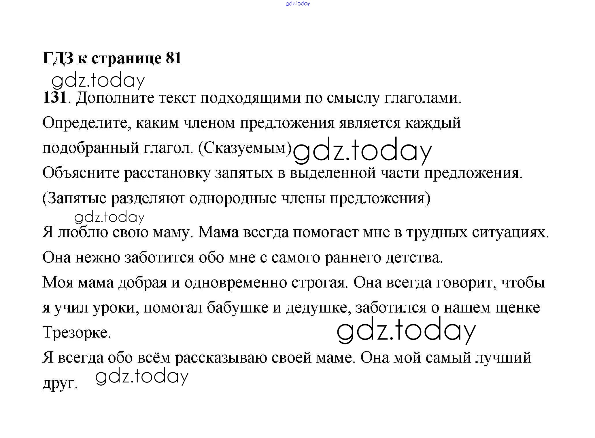 На страницах сайта gdz.today вы найдете учебный и вспомогательный материал, направленный на улучшения знаний школьной программы. ГДЗ - онлайн мир знаний Решение к части 2 131 Учебнику по Русскому языку для 4 класса Климанова, Бабушкина Просвещение Перспектива 2014