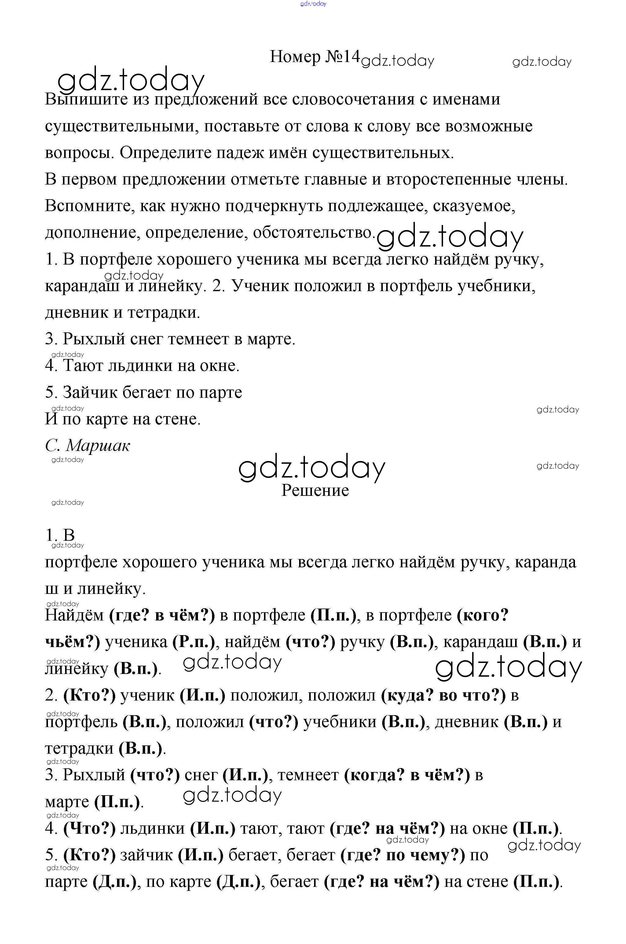 На страницах сайта gdz.today вы найдете учебный и вспомогательный материал, направленный на улучшения знаний школьной программы. ГДЗ - онлайн мир знаний Решение к части 2 14 Учебнику по Русскому языку для 4 класса Климанова, Бабушкина Просвещение Перспектива 2014