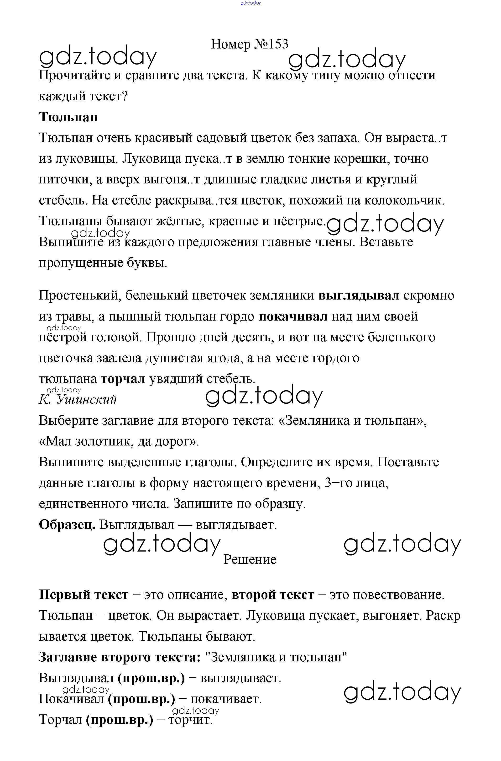 На страницах сайта gdz.today вы найдете учебный и вспомогательный материал, направленный на улучшения знаний школьной программы. ГДЗ - онлайн мир знаний Решение к части 2 153 Учебнику по Русскому языку для 4 класса Климанова, Бабушкина Просвещение Перспектива 2014