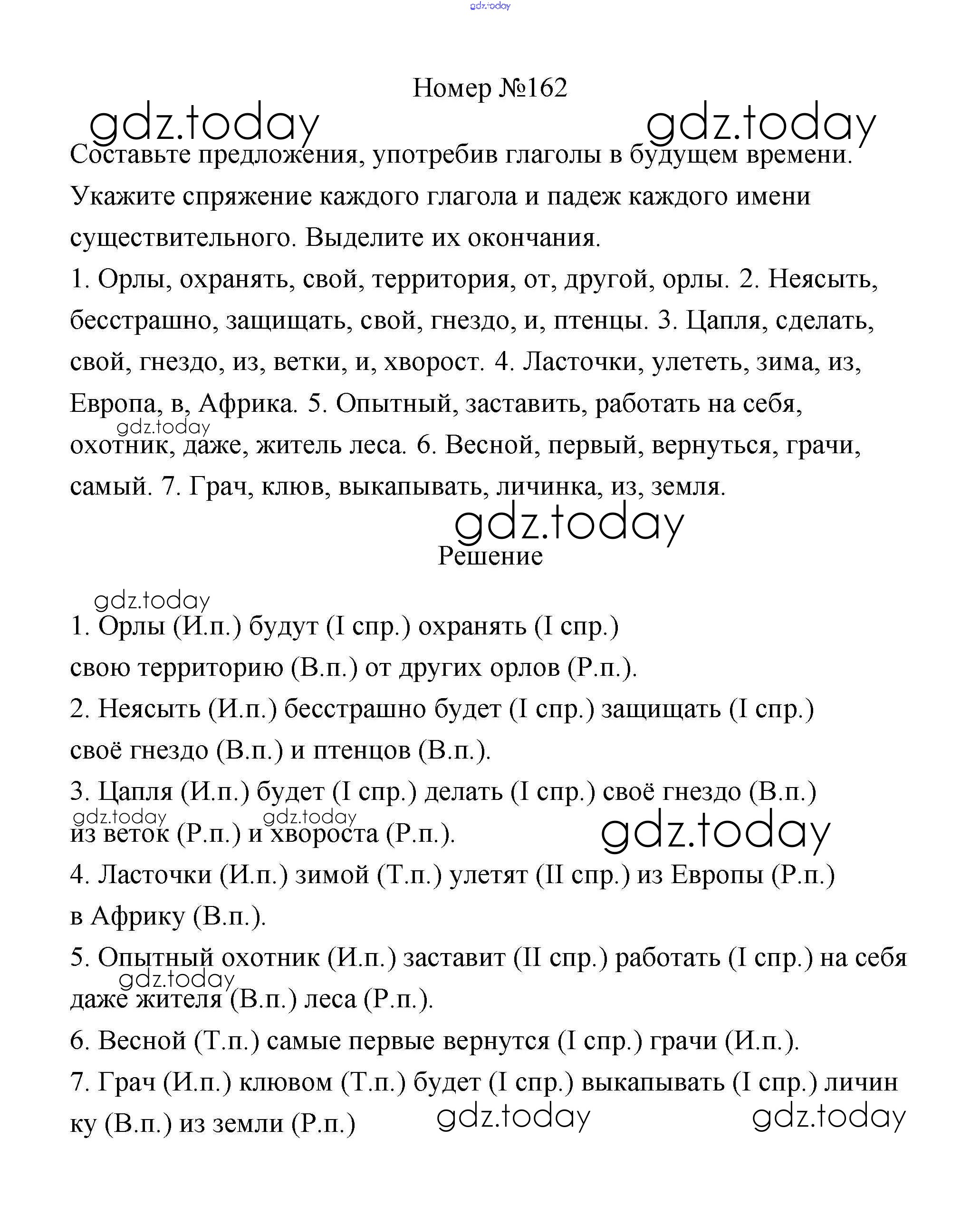 На страницах сайта gdz.today вы найдете учебный и вспомогательный материал, направленный на улучшения знаний школьной программы. ГДЗ - онлайн мир знаний Решение к части 2 162 Учебнику по Русскому языку для 4 класса Климанова, Бабушкина Просвещение Перспектива 2014