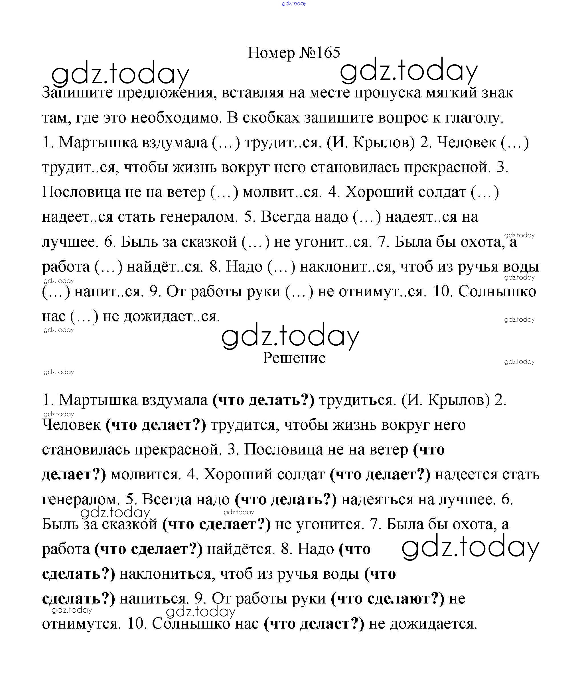 На страницах сайта gdz.today вы найдете учебный и вспомогательный материал, направленный на улучшения знаний школьной программы. ГДЗ - онлайн мир знаний Решение к части 2 165 Учебнику по Русскому языку для 4 класса Климанова, Бабушкина Просвещение Перспектива 2014