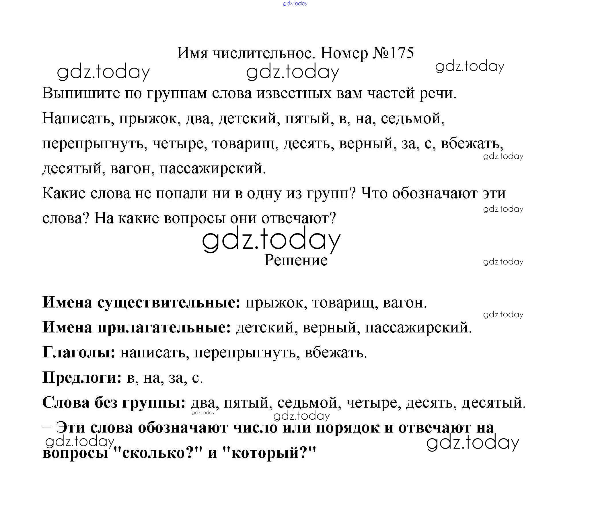 На страницах сайта gdz.today вы найдете учебный и вспомогательный материал, направленный на улучшения знаний школьной программы. ГДЗ - онлайн мир знаний Решение к части 2 175 Учебнику по Русскому языку для 4 класса Климанова, Бабушкина Просвещение Перспектива 2014