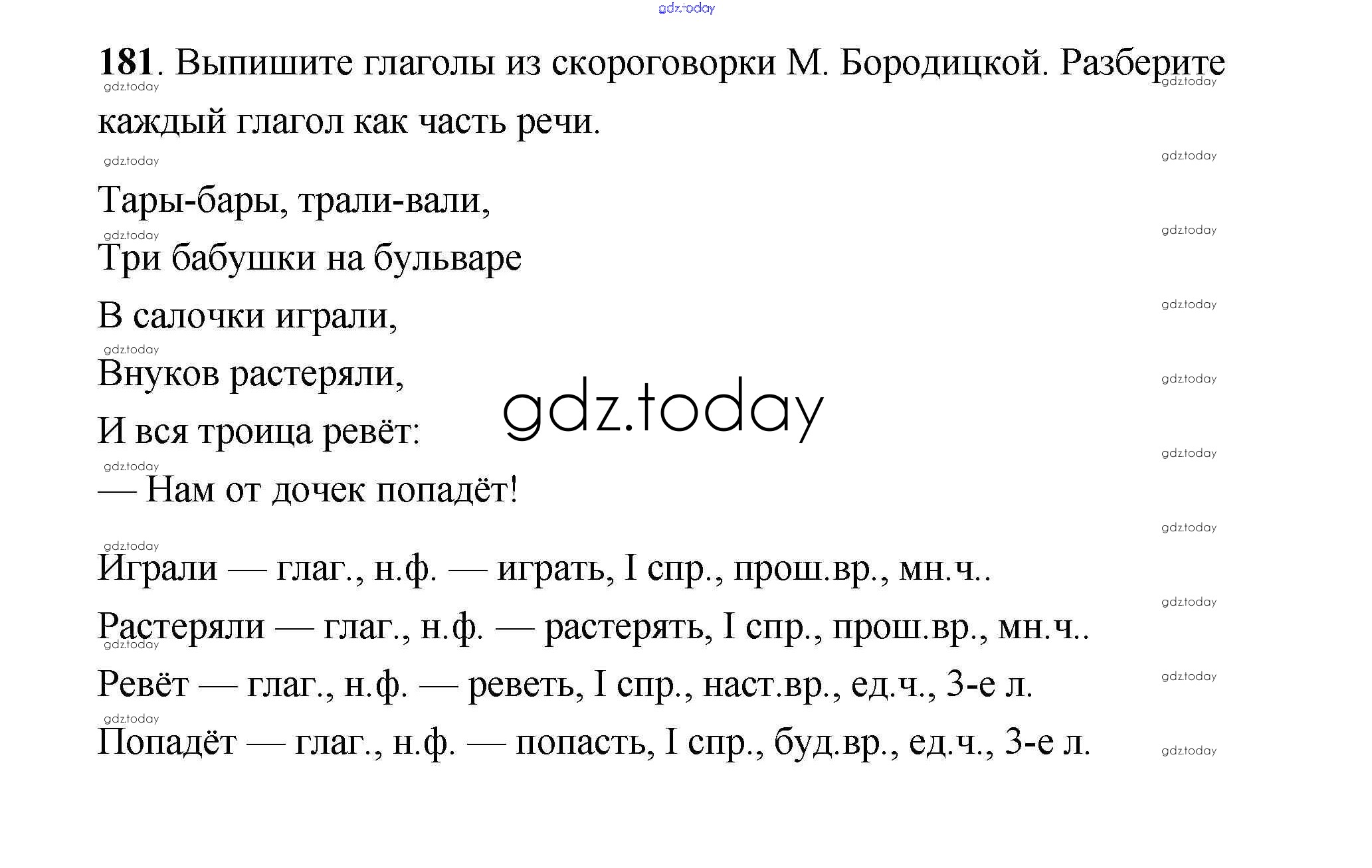 На страницах сайта gdz.today вы найдете учебный и вспомогательный материал, направленный на улучшения знаний школьной программы. ГДЗ - онлайн мир знаний Решение к части 2 181 Учебнику по Русскому языку для 4 класса Климанова, Бабушкина Просвещение Перспектива 2014