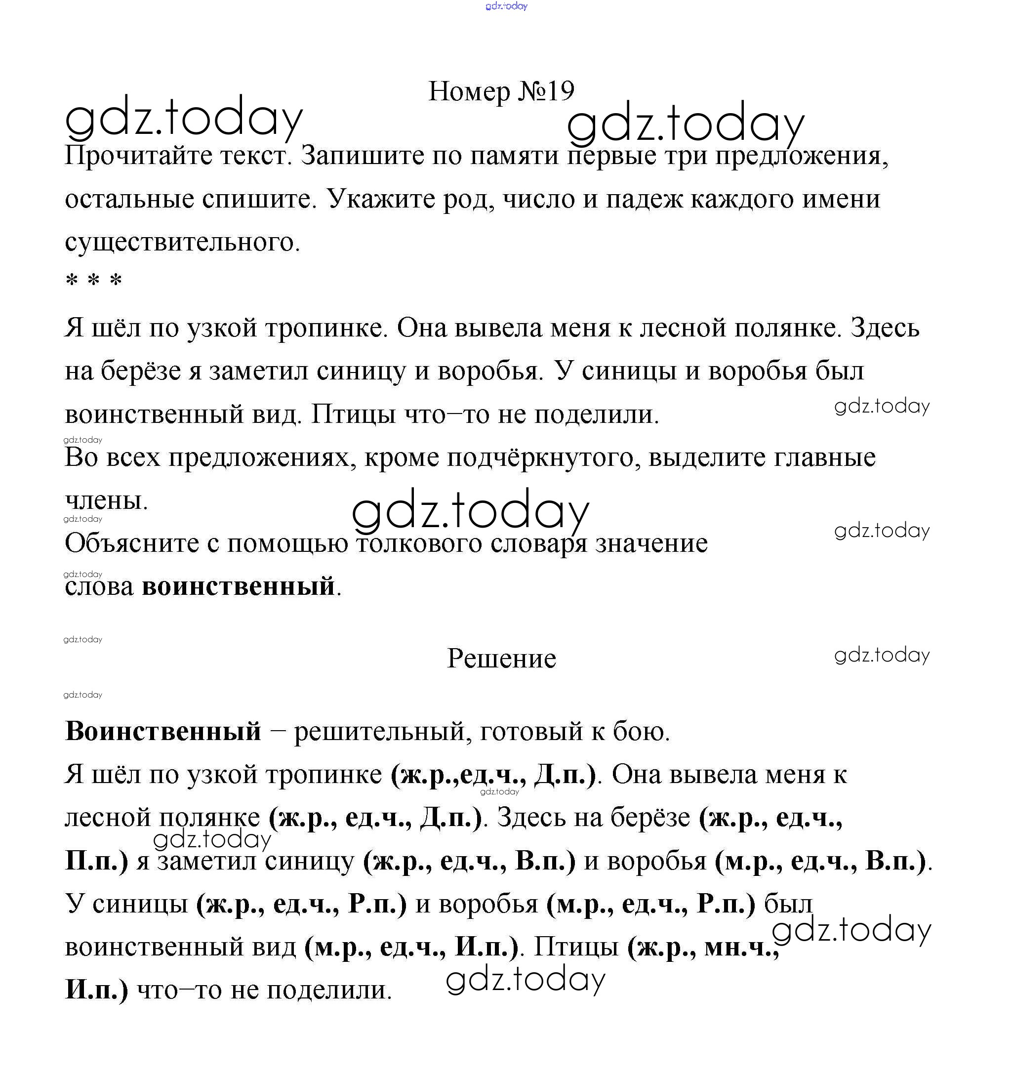 На страницах сайта gdz.today вы найдете учебный и вспомогательный материал, направленный на улучшения знаний школьной программы. ГДЗ - онлайн мир знаний Решение к части 2 19 Учебнику по Русскому языку для 4 класса Климанова, Бабушкина Просвещение Перспектива 2014