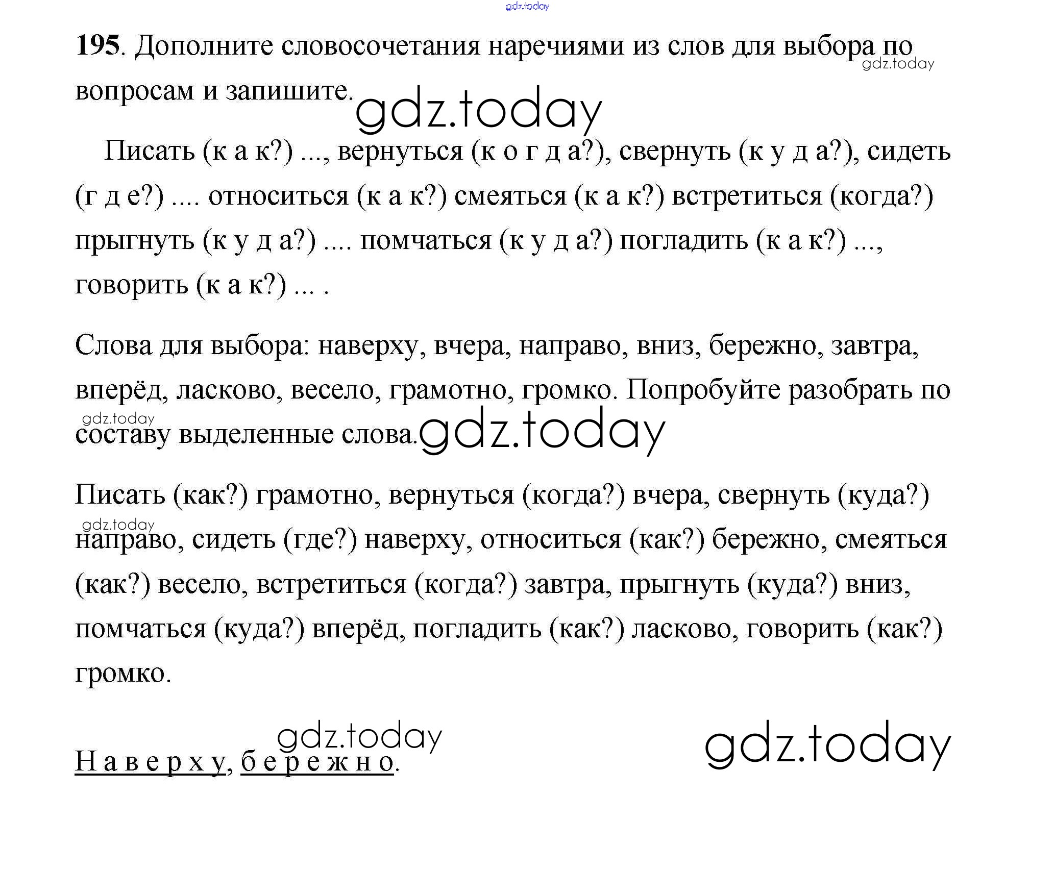 На страницах сайта gdz.today вы найдете учебный и вспомогательный материал, направленный на улучшения знаний школьной программы. ГДЗ - онлайн мир знаний Решение к части 2 195 Учебнику по Русскому языку для 4 класса Климанова, Бабушкина Просвещение Перспектива 2014